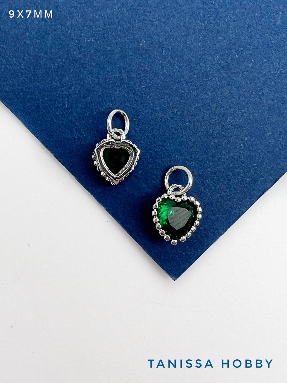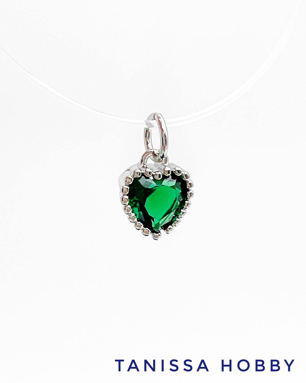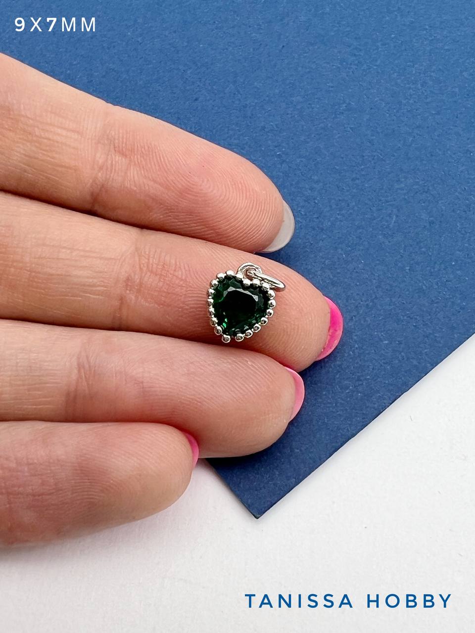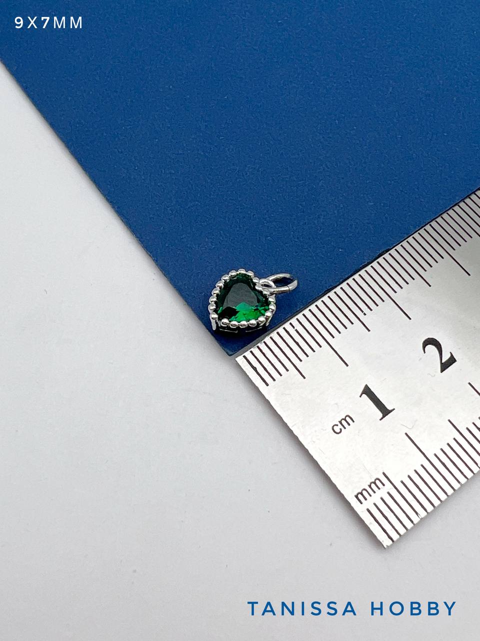 Подвеска сердце 7мм, зеленый фианит, родий, Р907