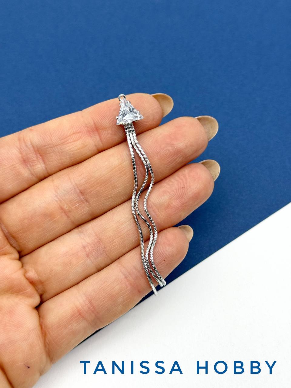 Подвеска кисточка с цепочками и крупным фианитом