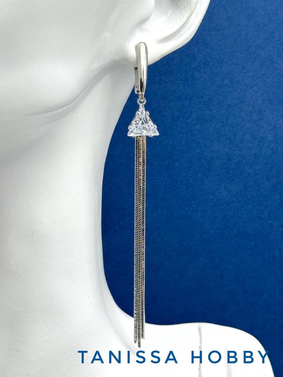 -Подвеска цепочки кисточка фианит 75мм, родий, ШТУКА, С406