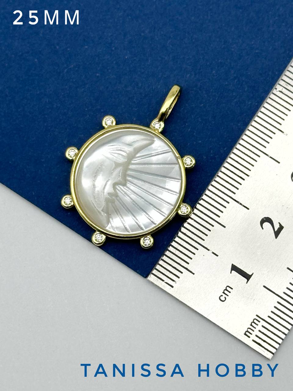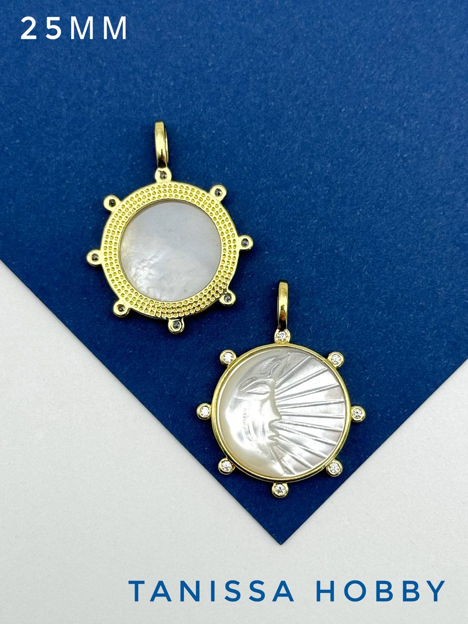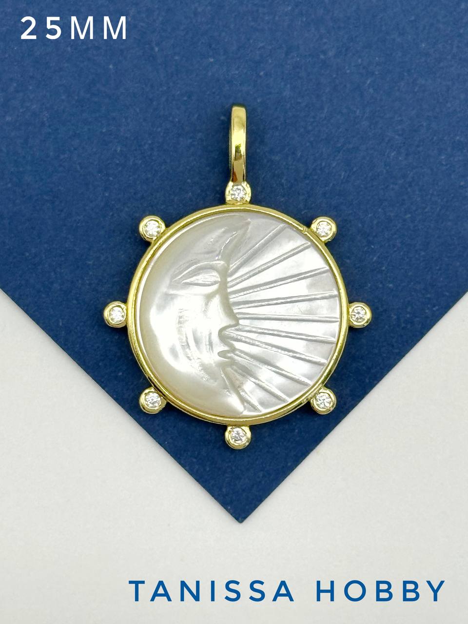 Круглая подвеска с вставкой из перламутра с рельефным изображением луны