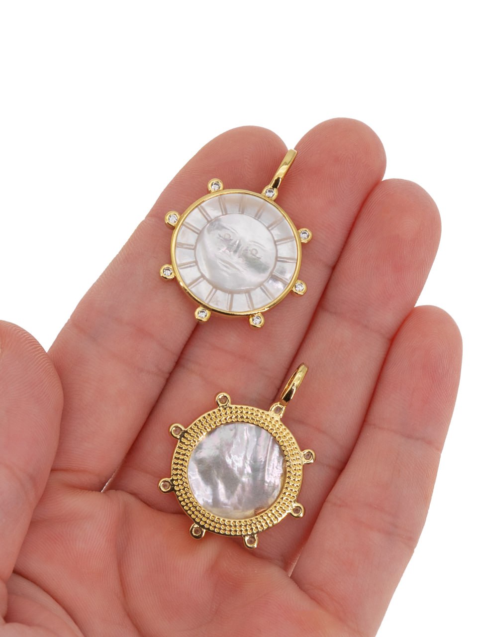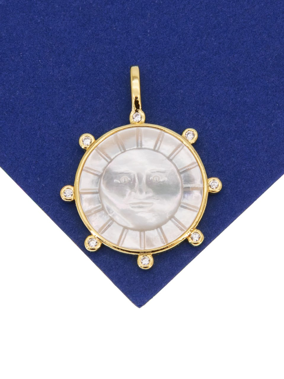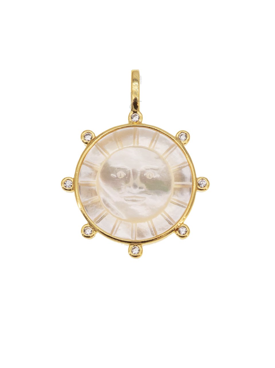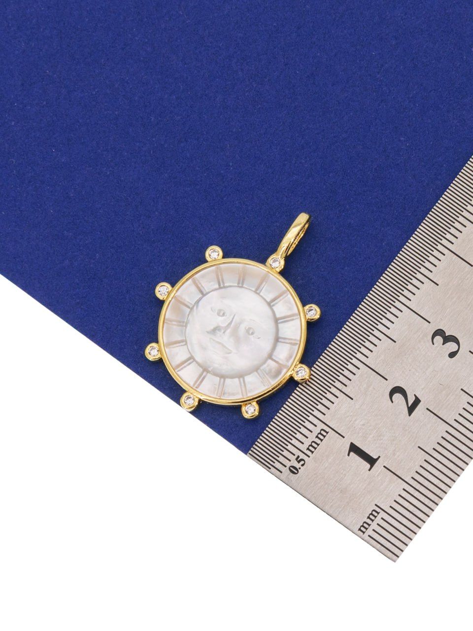 Круглая подвеска с вставкой из перламутра с рельефным изображением солнца