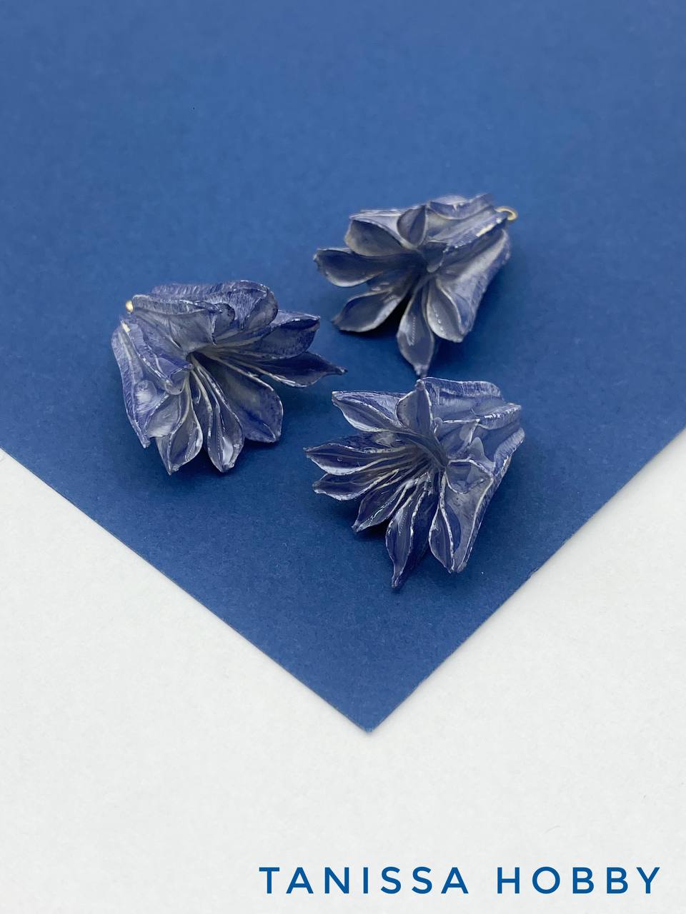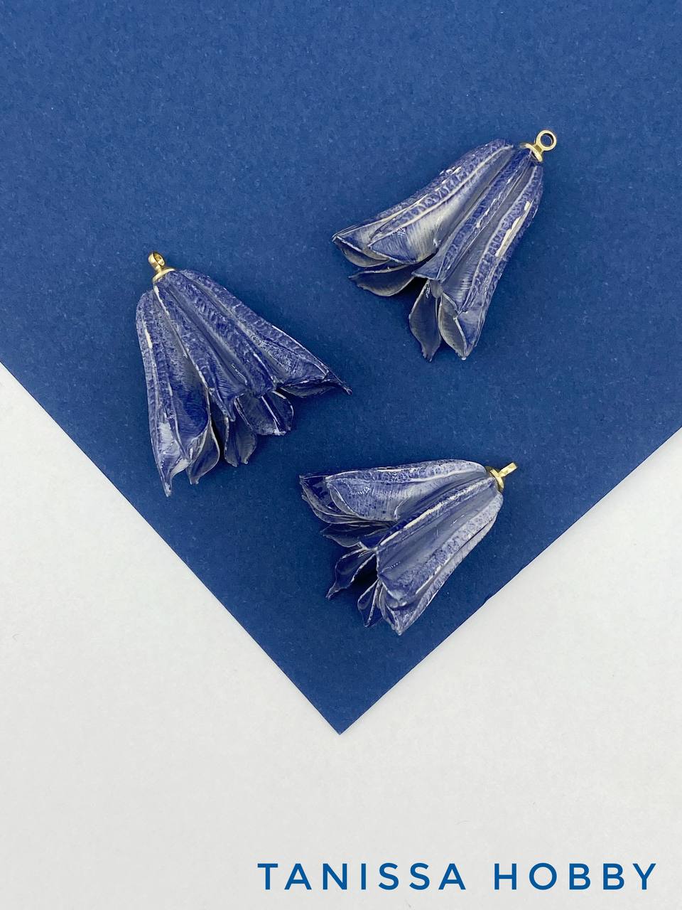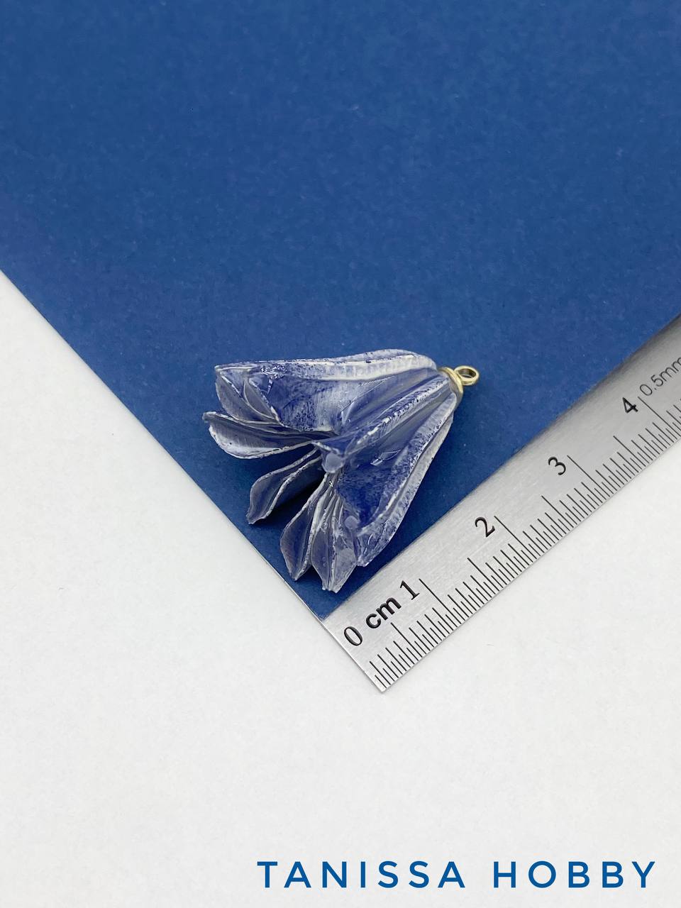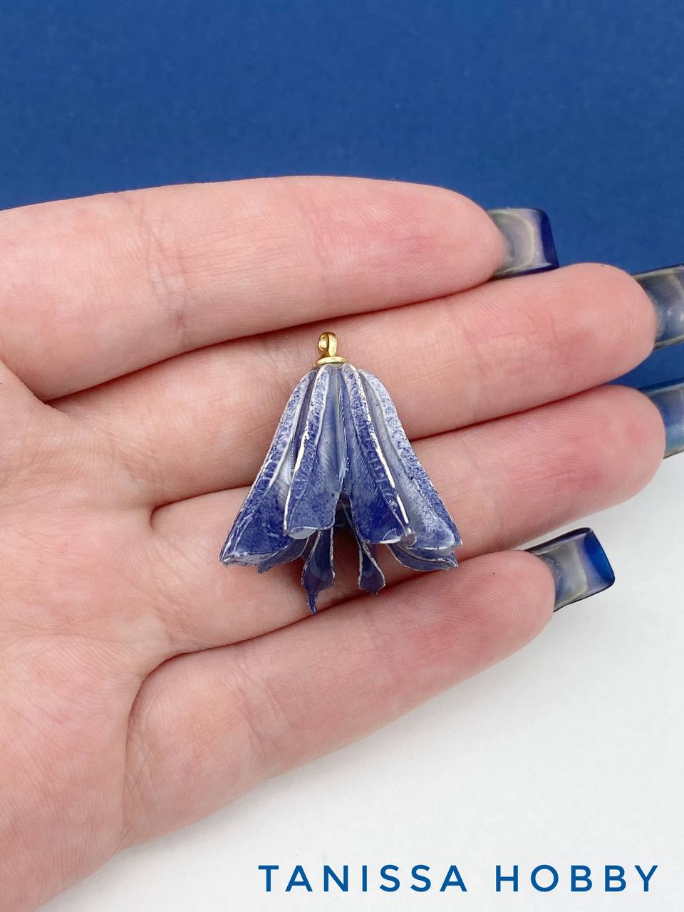 Подвеска цветок, бутон в смоле, синий, позолота, П035