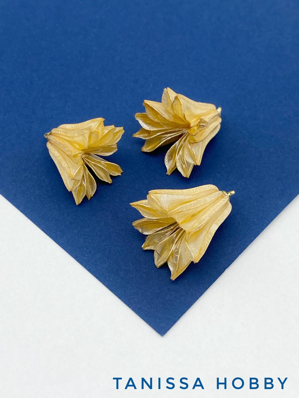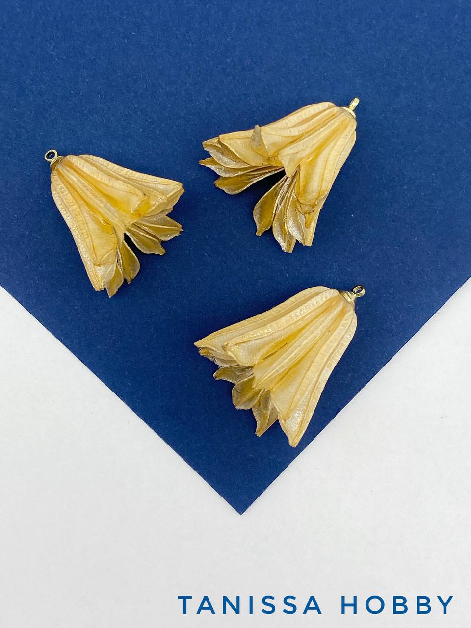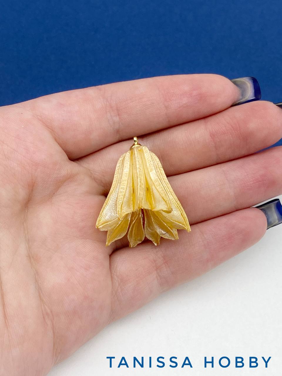 Подвеска цветок, бутон в смоле, кремовый, позолота, П046