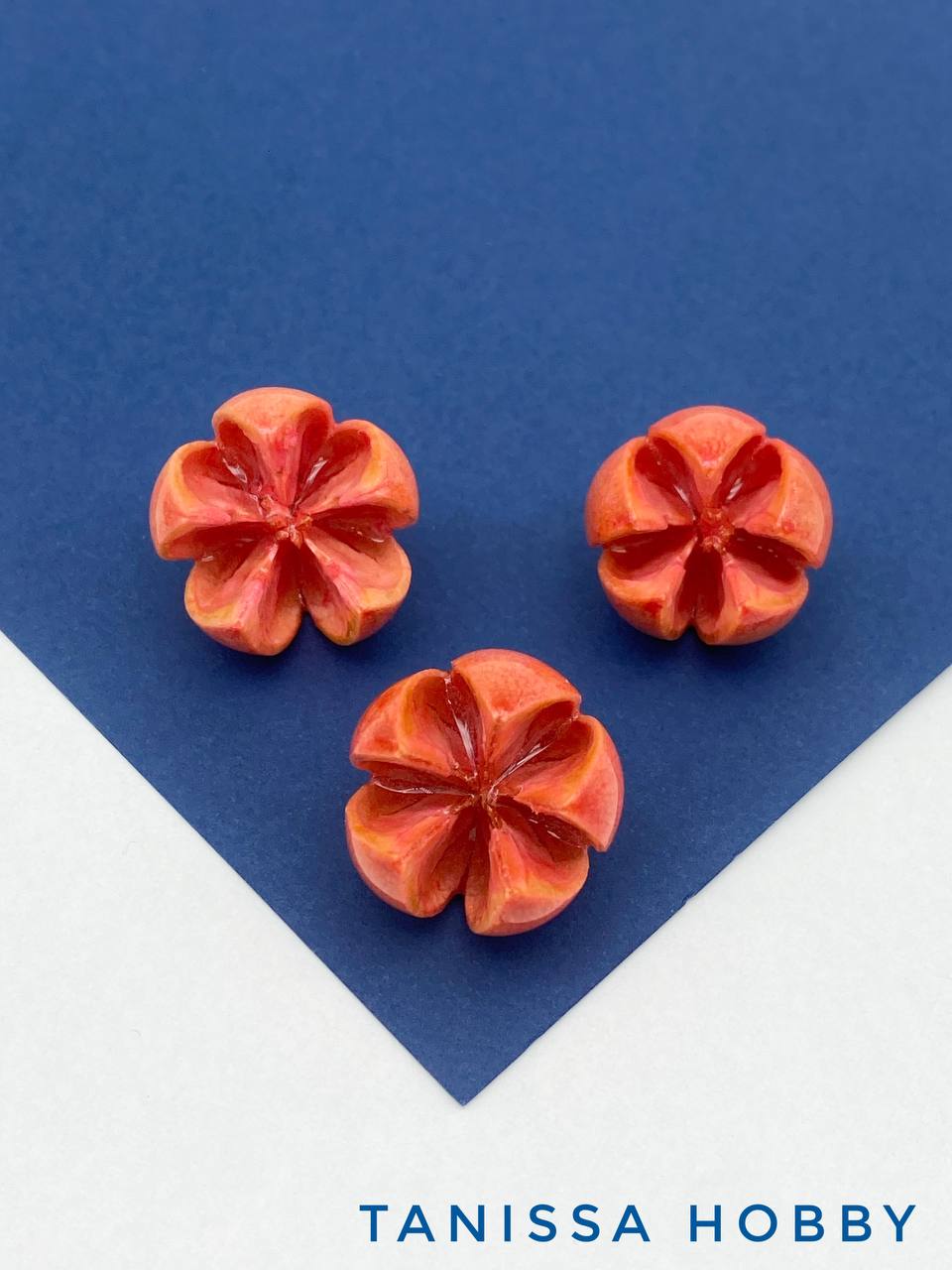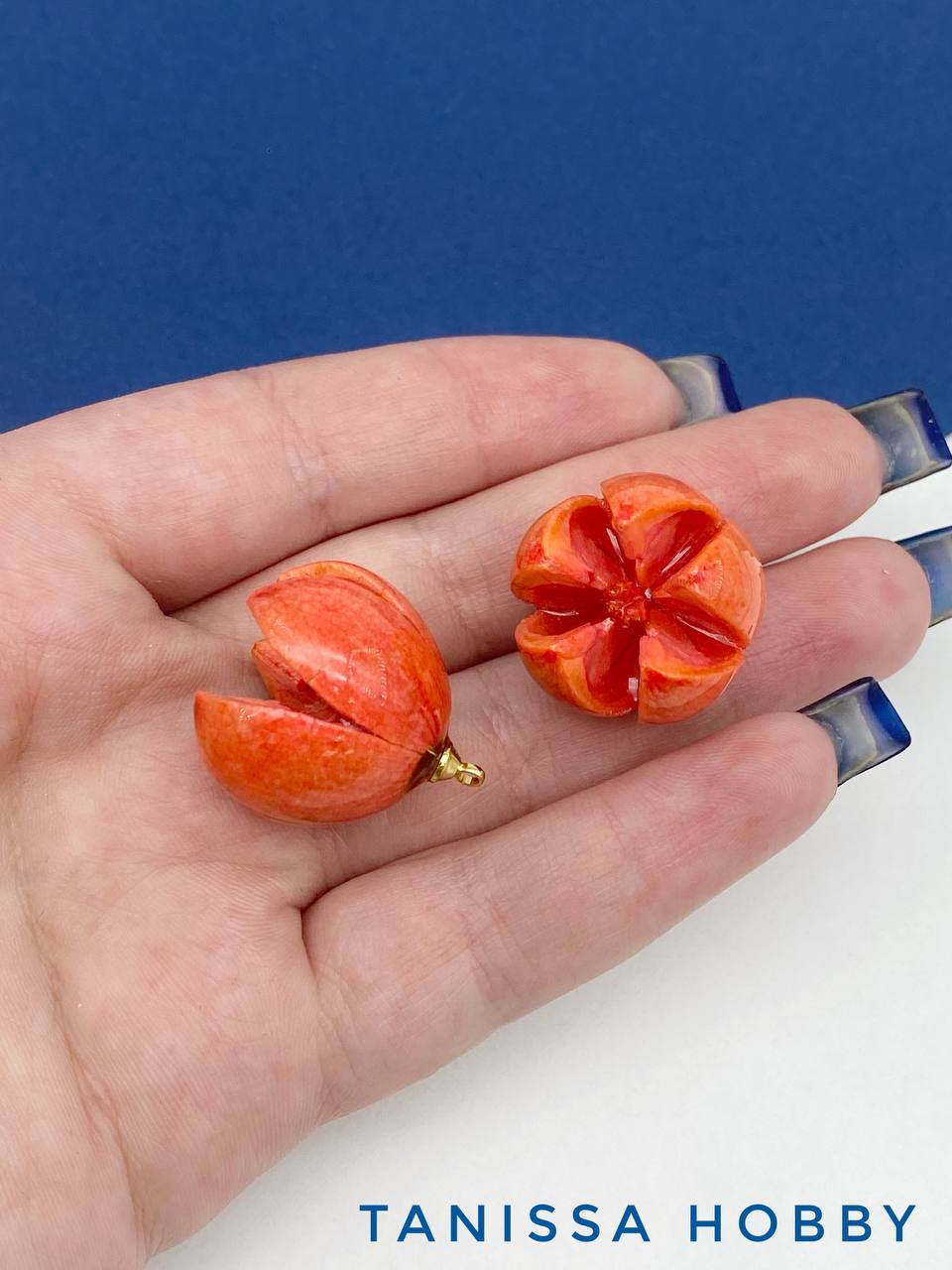 Подвеска цветок, бутон в смоле крупный, коралловый, позолота, П048