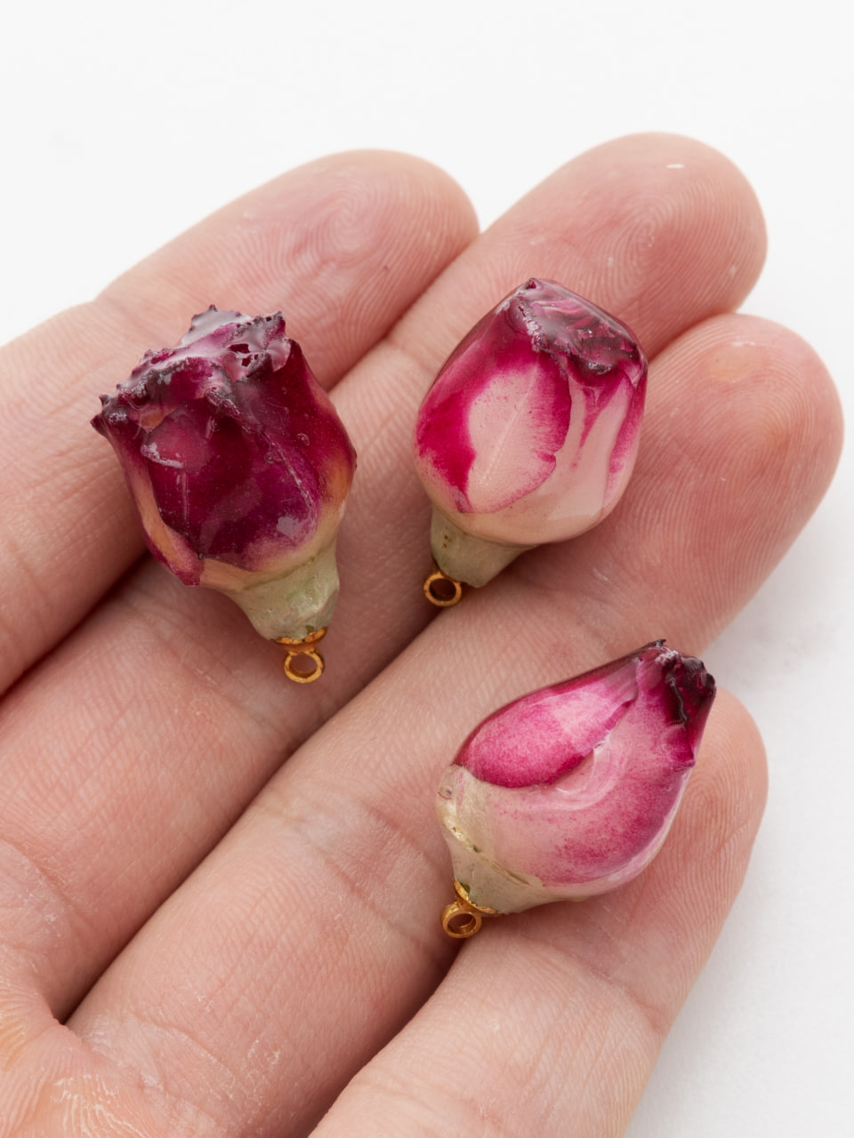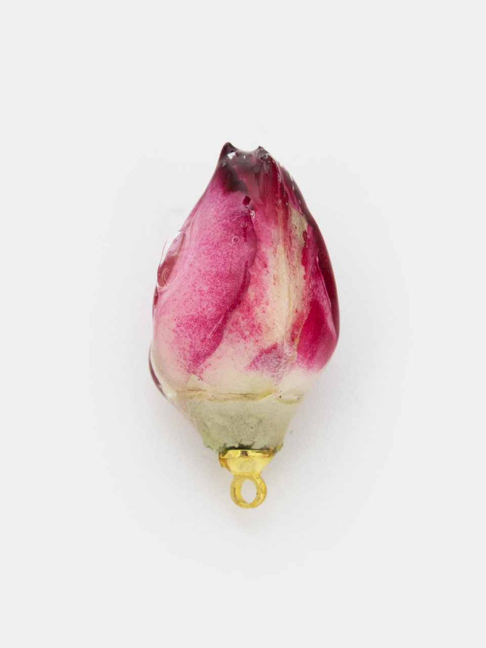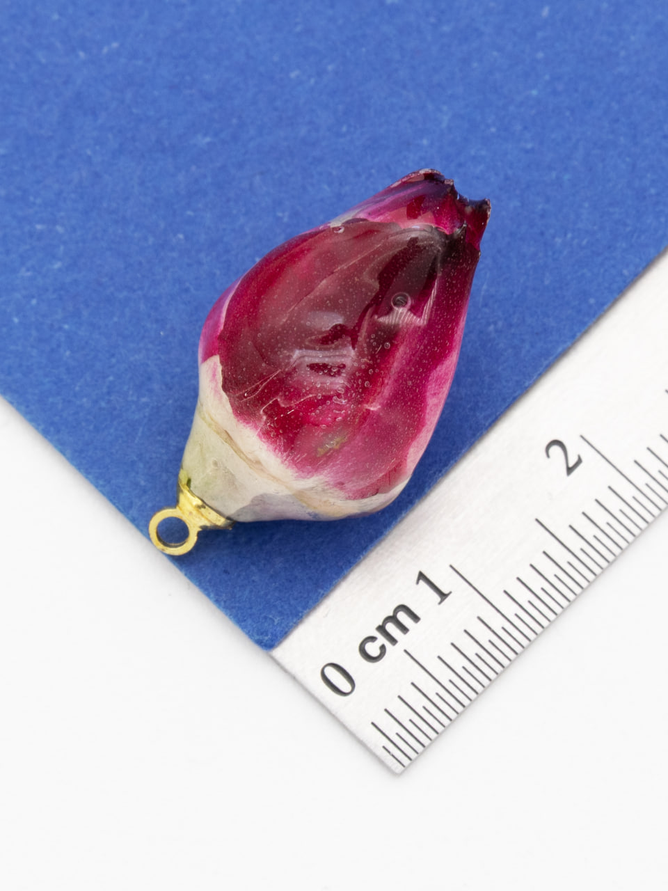 Подвеска цветок, бутон, роза в смоле, розовый, бордовый, позолота, П074
