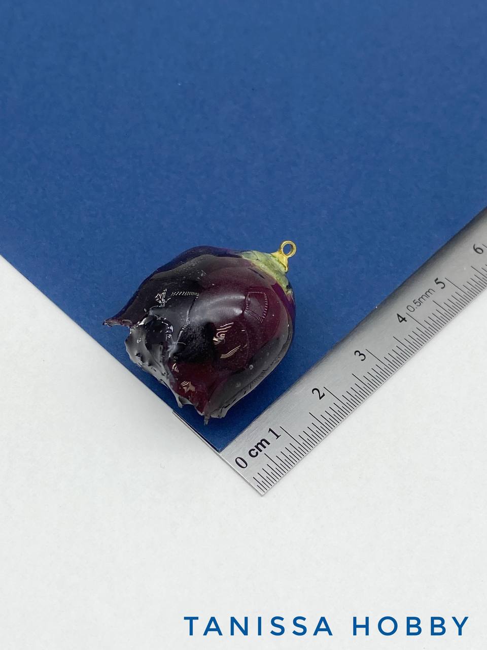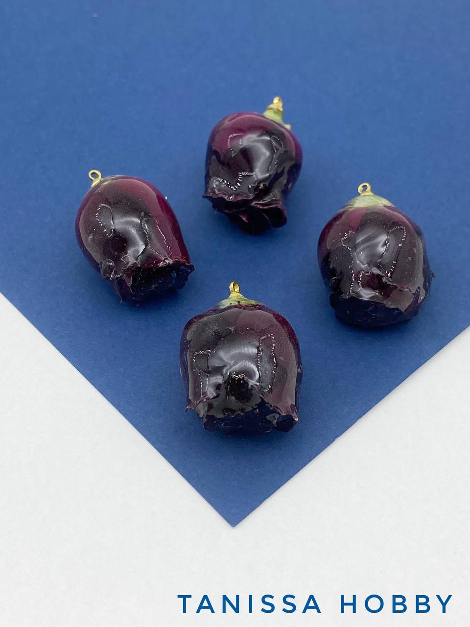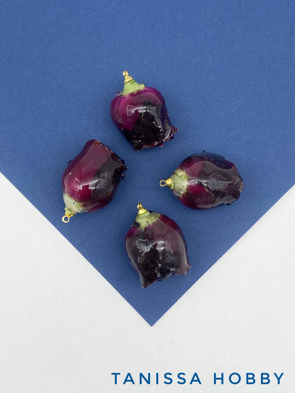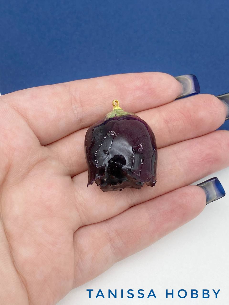 • Подвеска цветок, бутон, роза в смоле, бордовый большой, позолота, П029