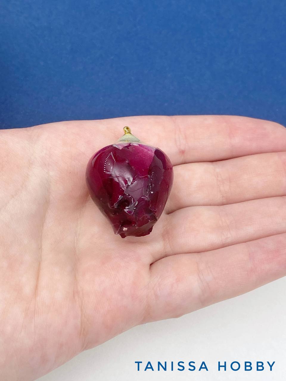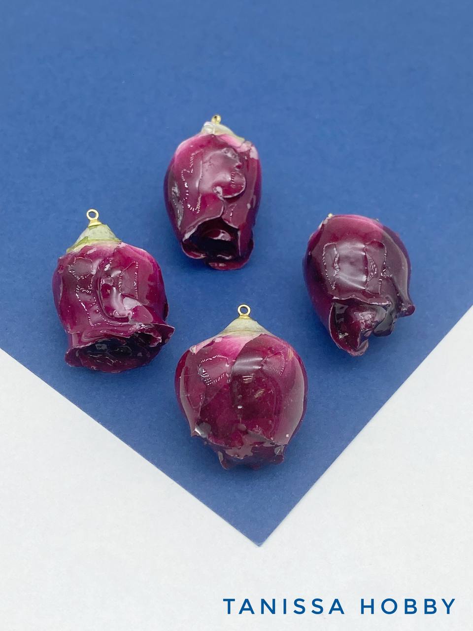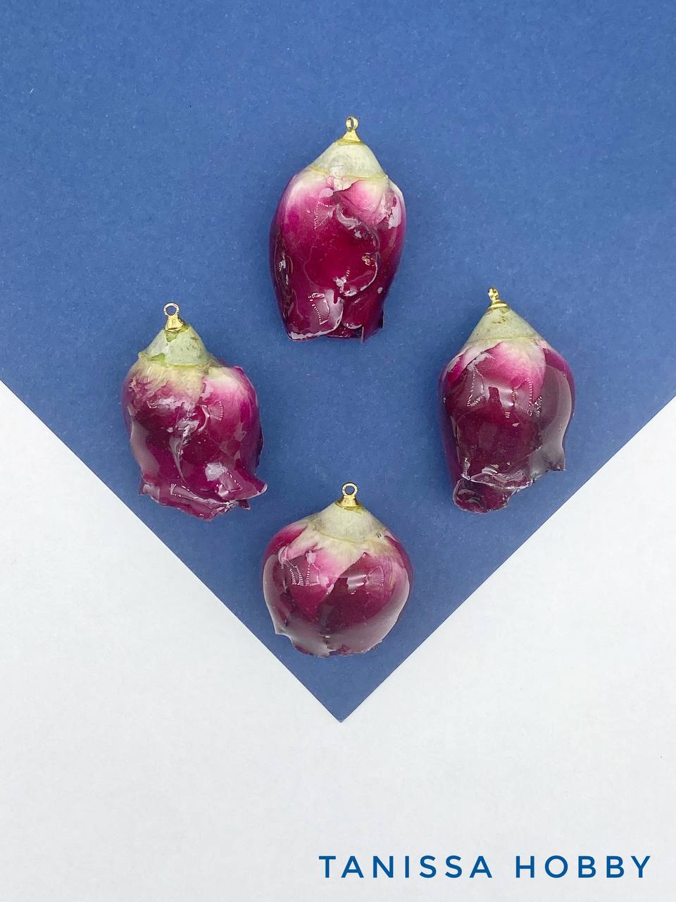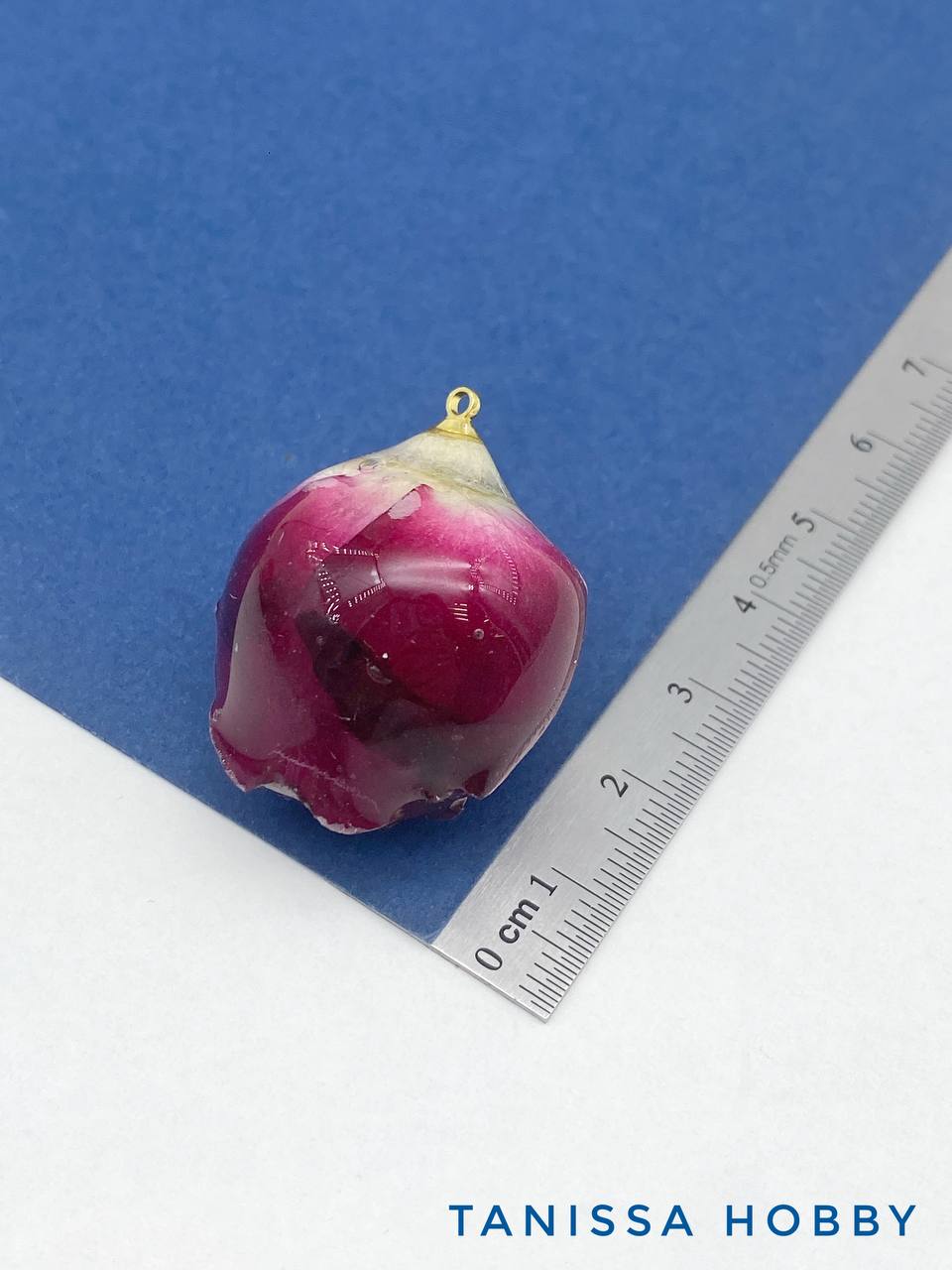 Подвеска цветок, бутон, роза в смоле, бордовый, позолота, П002