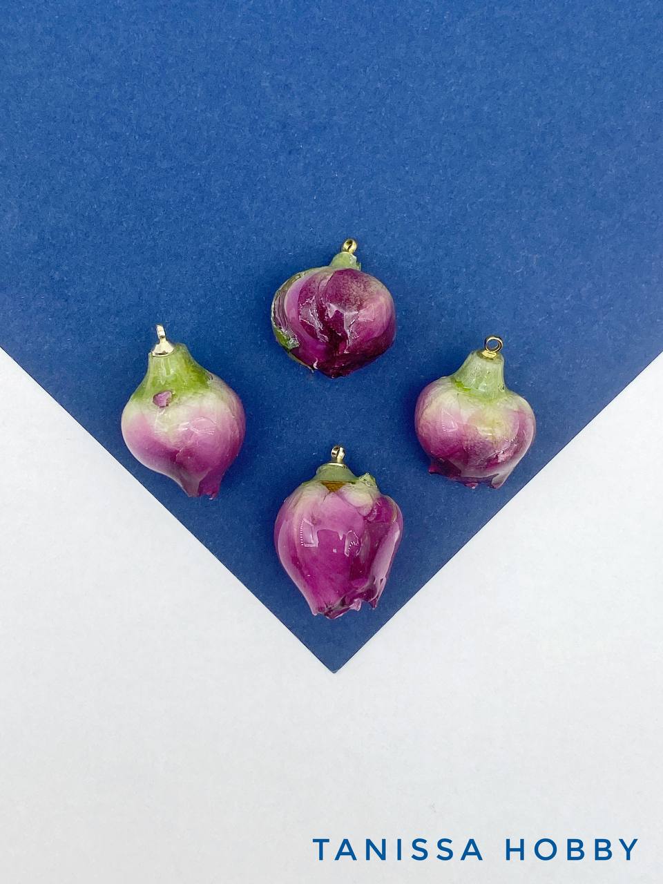 Подвеска цветок, бутон, роза в смоле, розовый, бордовый, позолота, П074