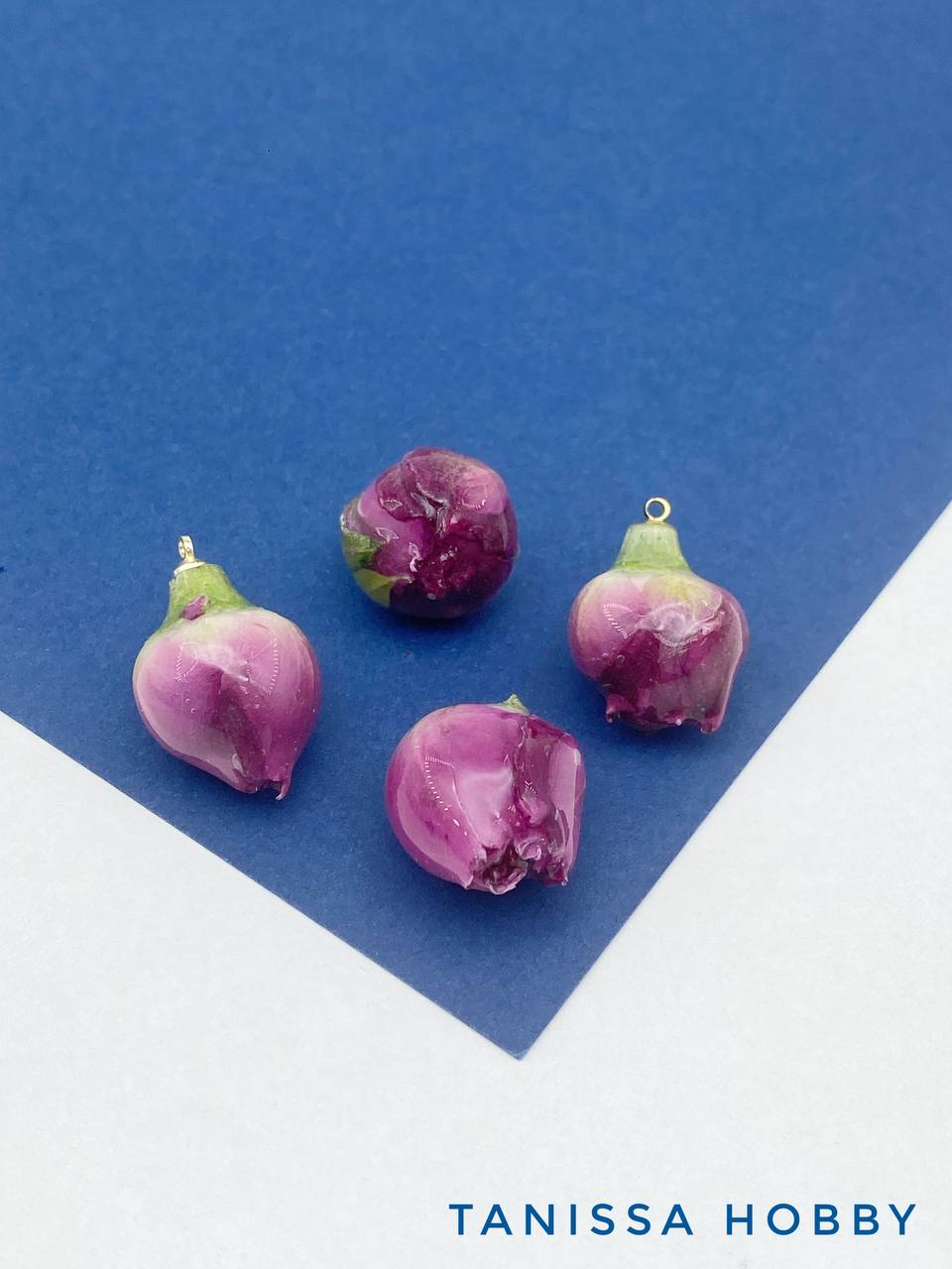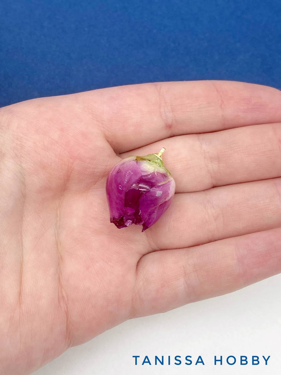 • Подвеска цветок, бутон, роза в смоле, лавандовый, позолота, ЦВ023