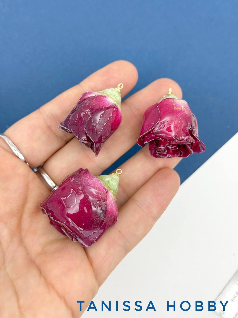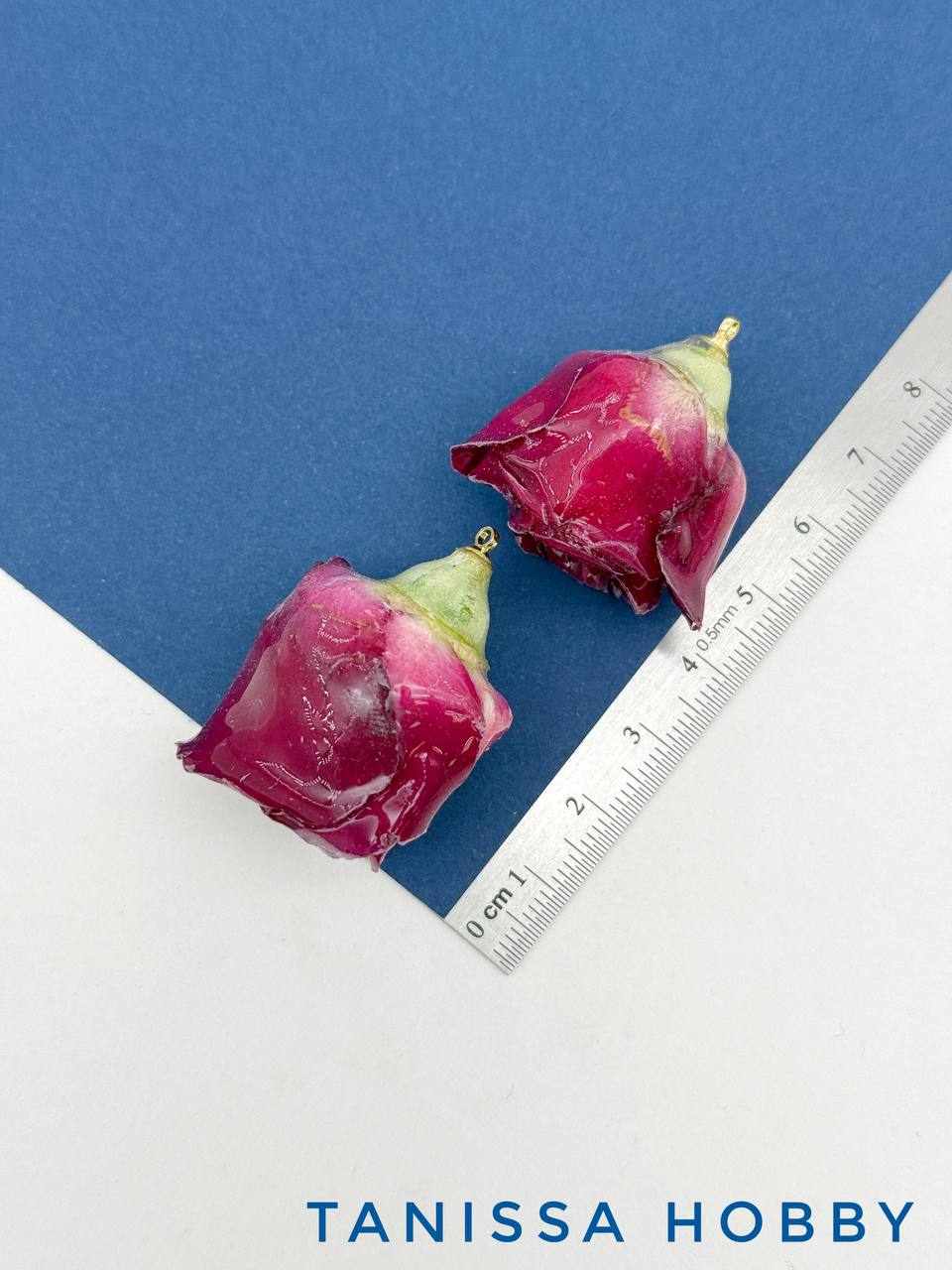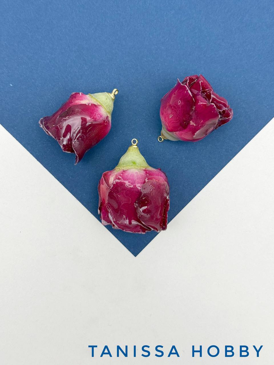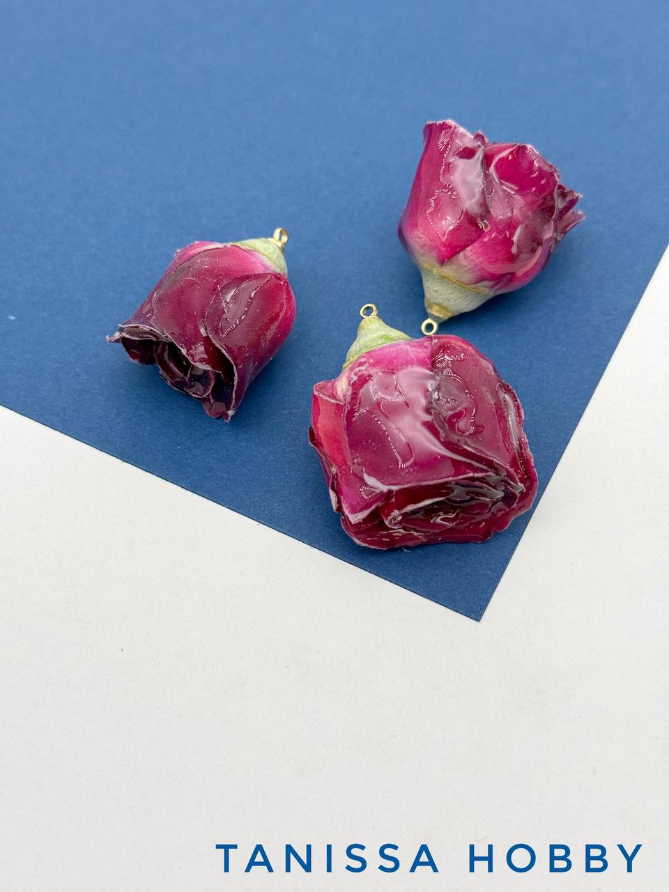 Подвеска цветок, бутон, роза в смоле, бордовый большой, позолота, ЦВ002