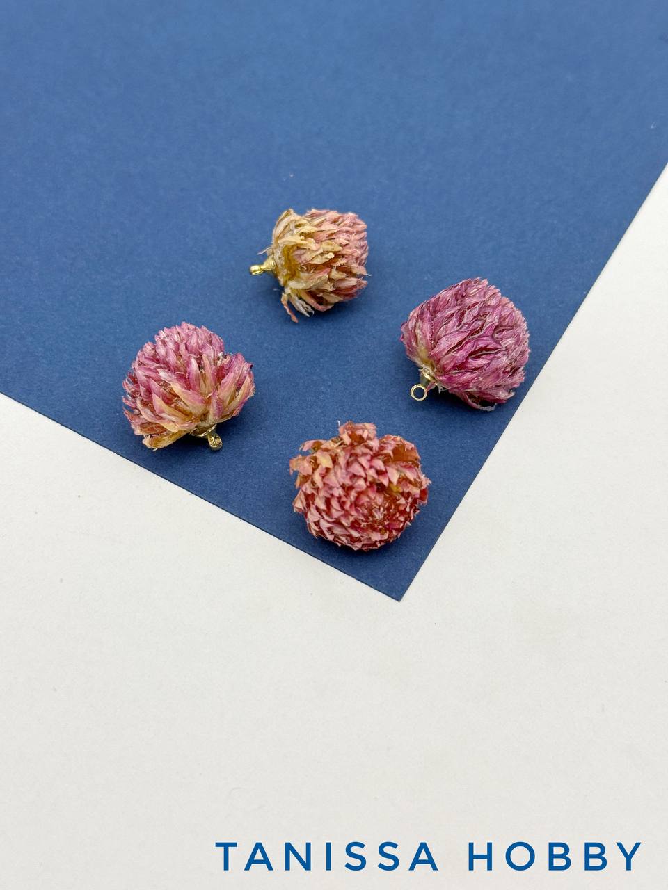 Подвеска цветок, бутон, клевер в смоле, розовый, позолота, ЦВ004