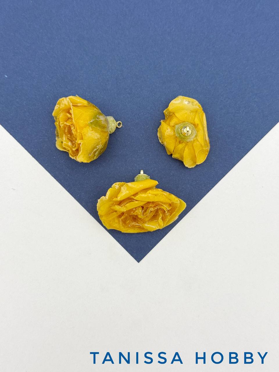 Подвеска цветок, бутон, роза в смоле, желтый, позолота, ЦВ018
