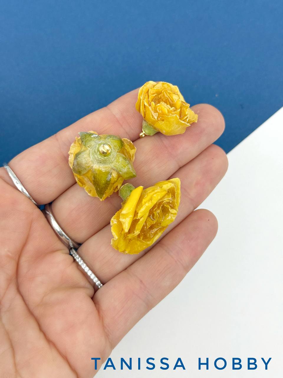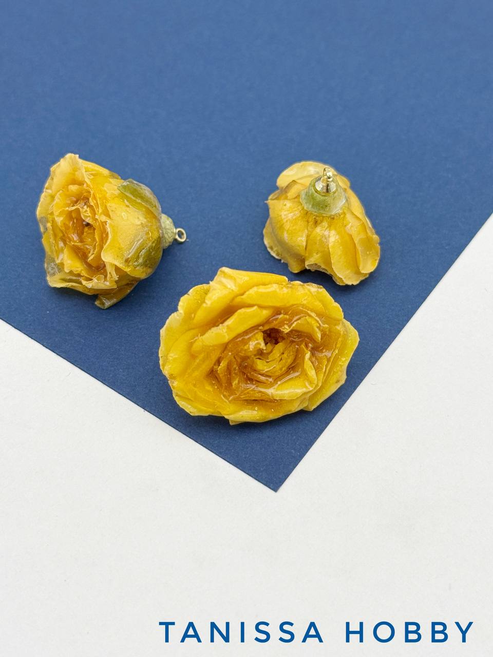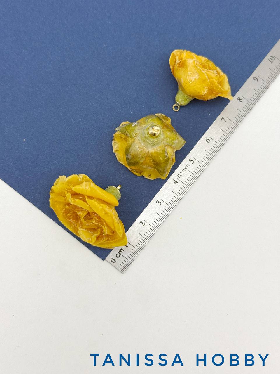 -Подвеска цветок, бутон, роза в смоле, желтый, позолота, ЦВ007