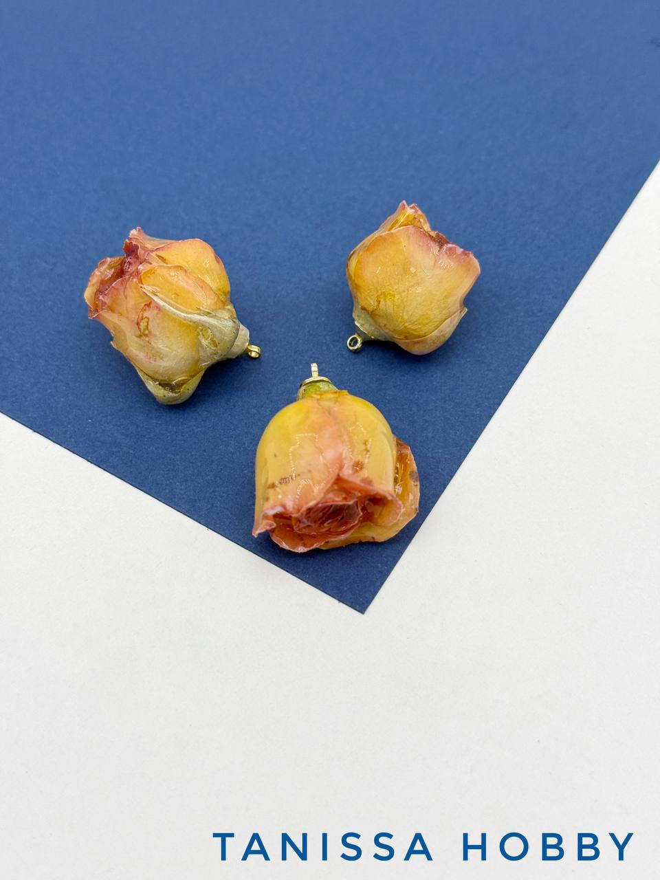 Подвеска цветок, бутон, роза в смоле, желтый, позолота, ЦВ007