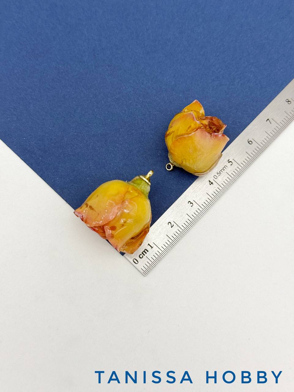 Подвеска цветок, бутон, роза в смоле, желтый горчичный, позолота, ЦВ009