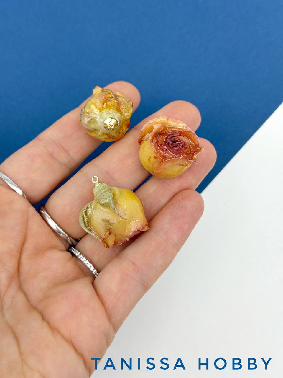 -Подвеска цветок, бутон, роза в смоле, желтый горчичный, позолота, ЦВ009