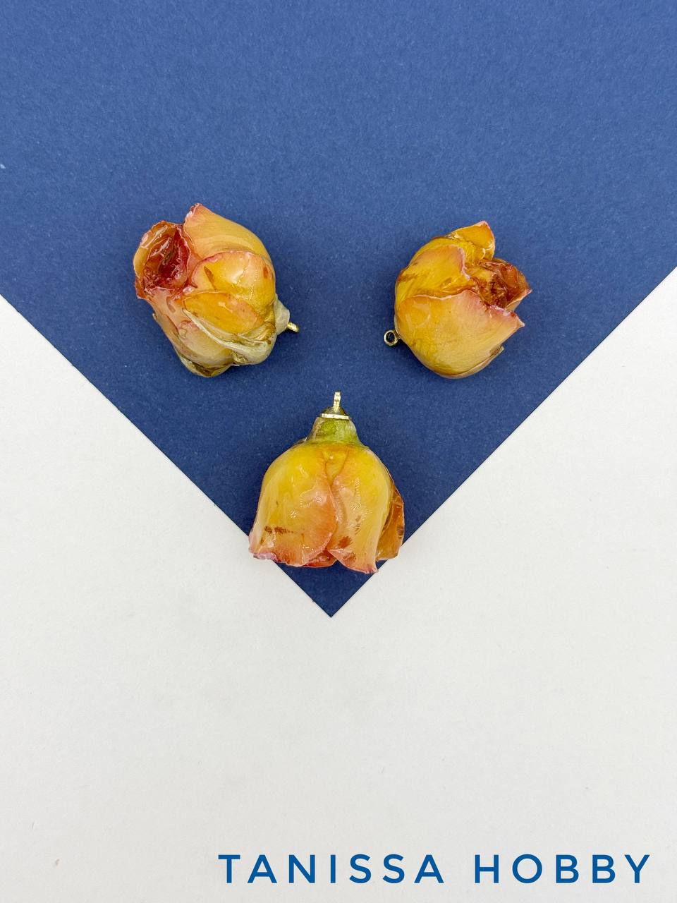 • Подвеска цветок, бутон, роза в смоле, желтый, позолота, ЦВ007