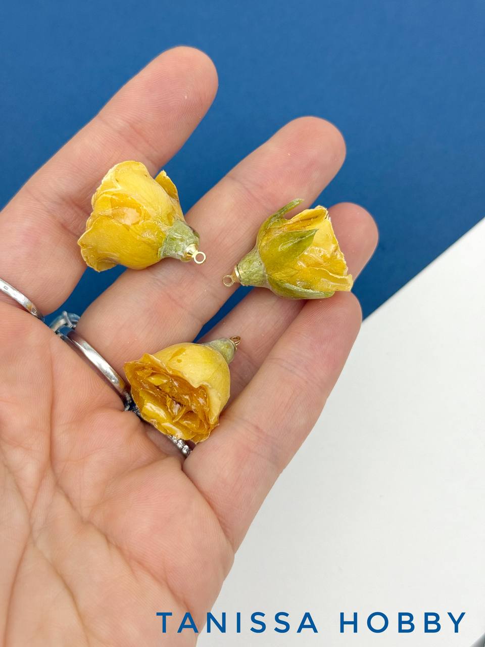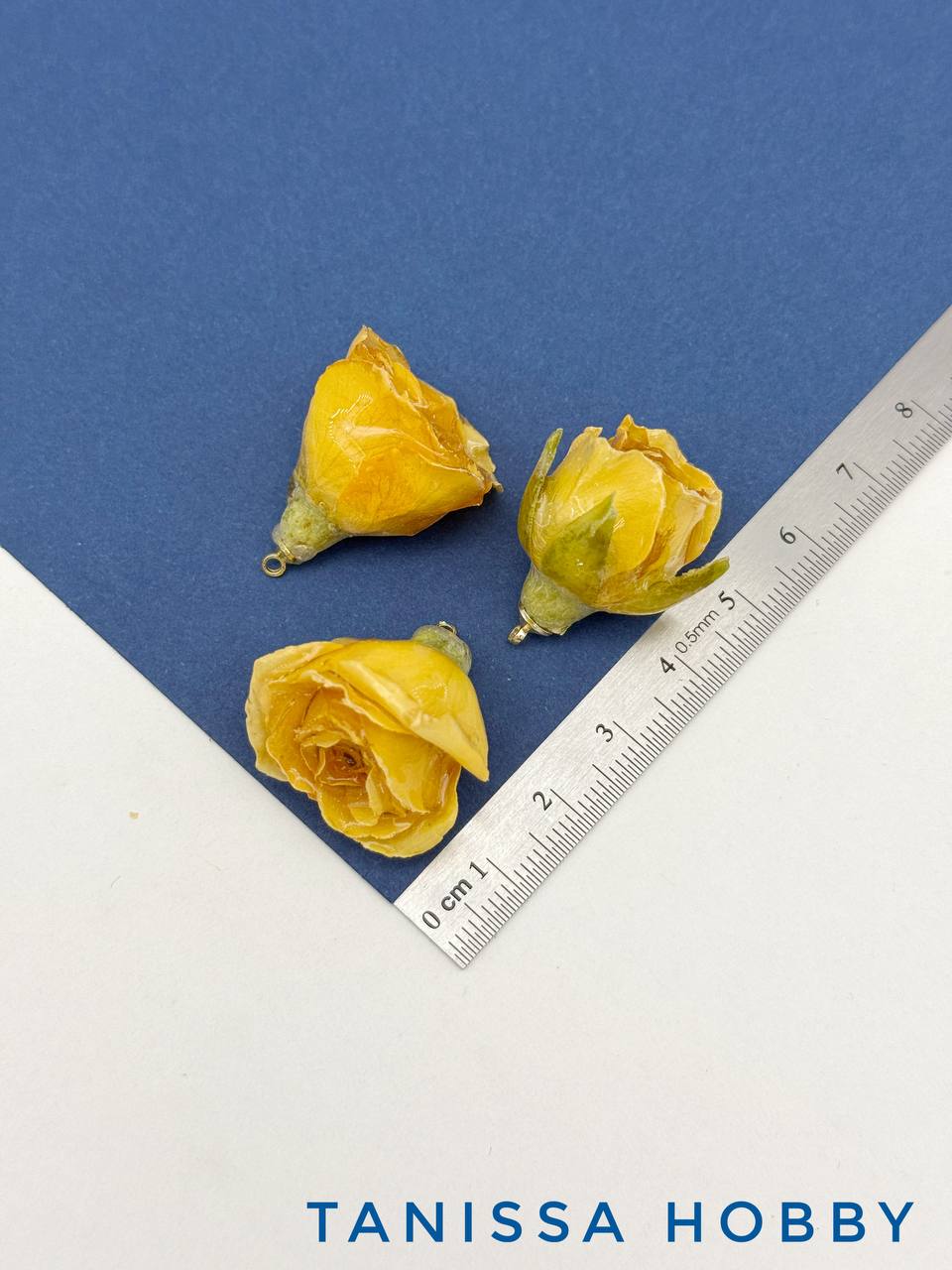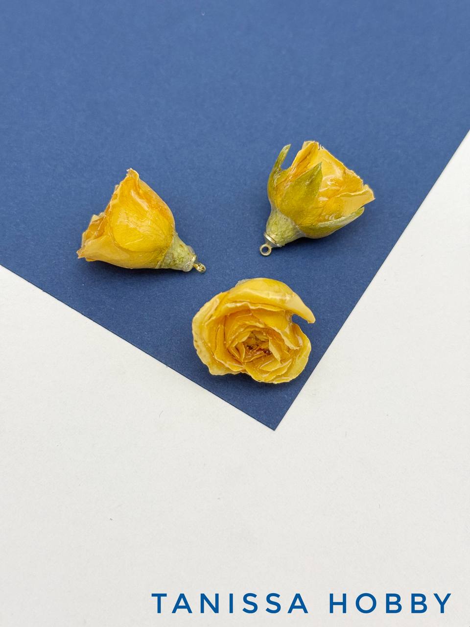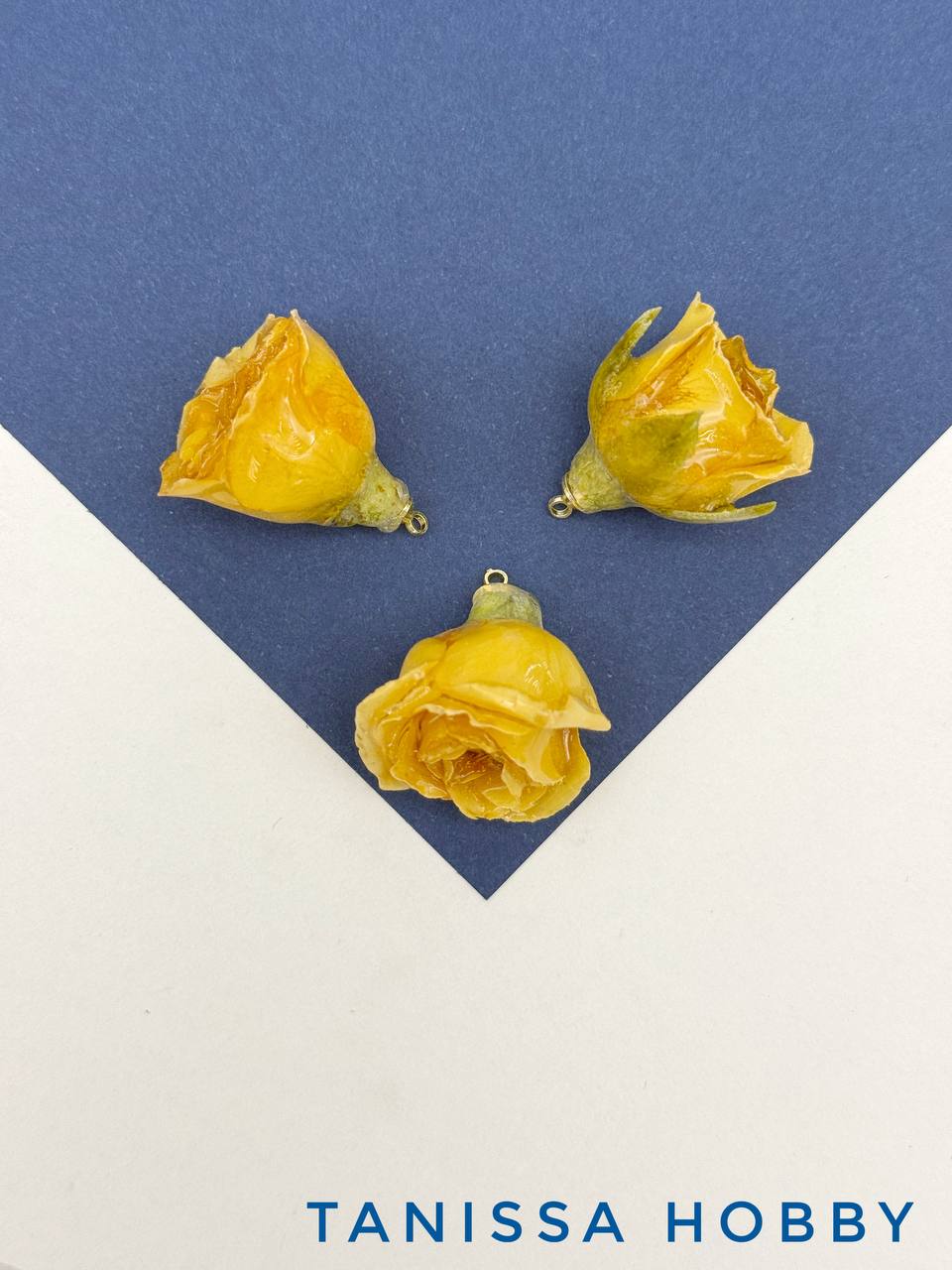 Подвеска цветок, бутон, роза в смоле, желтый, позолота, ЦВ018