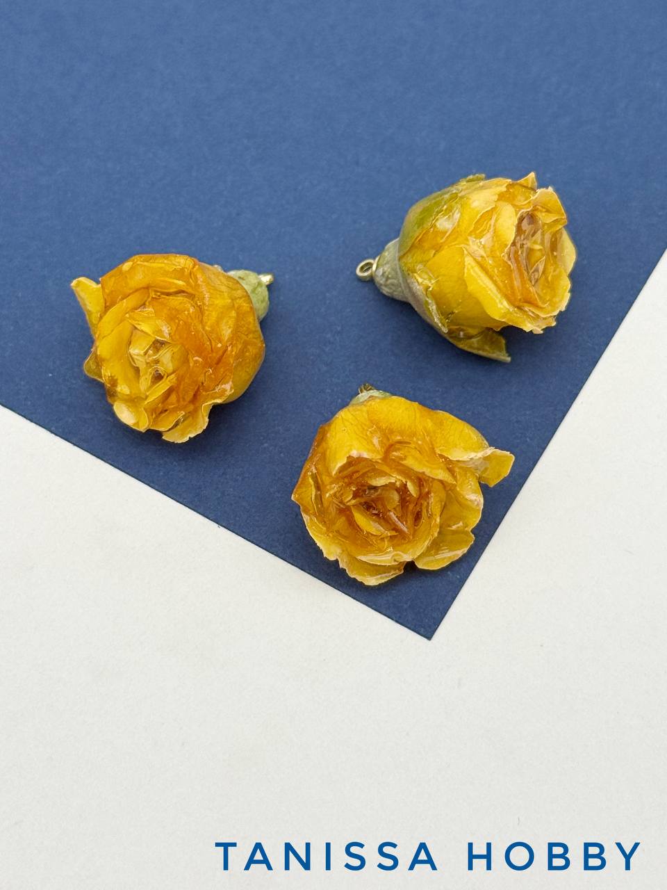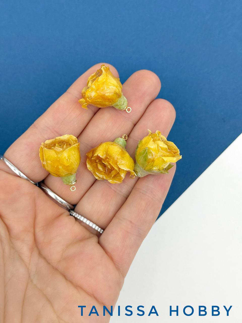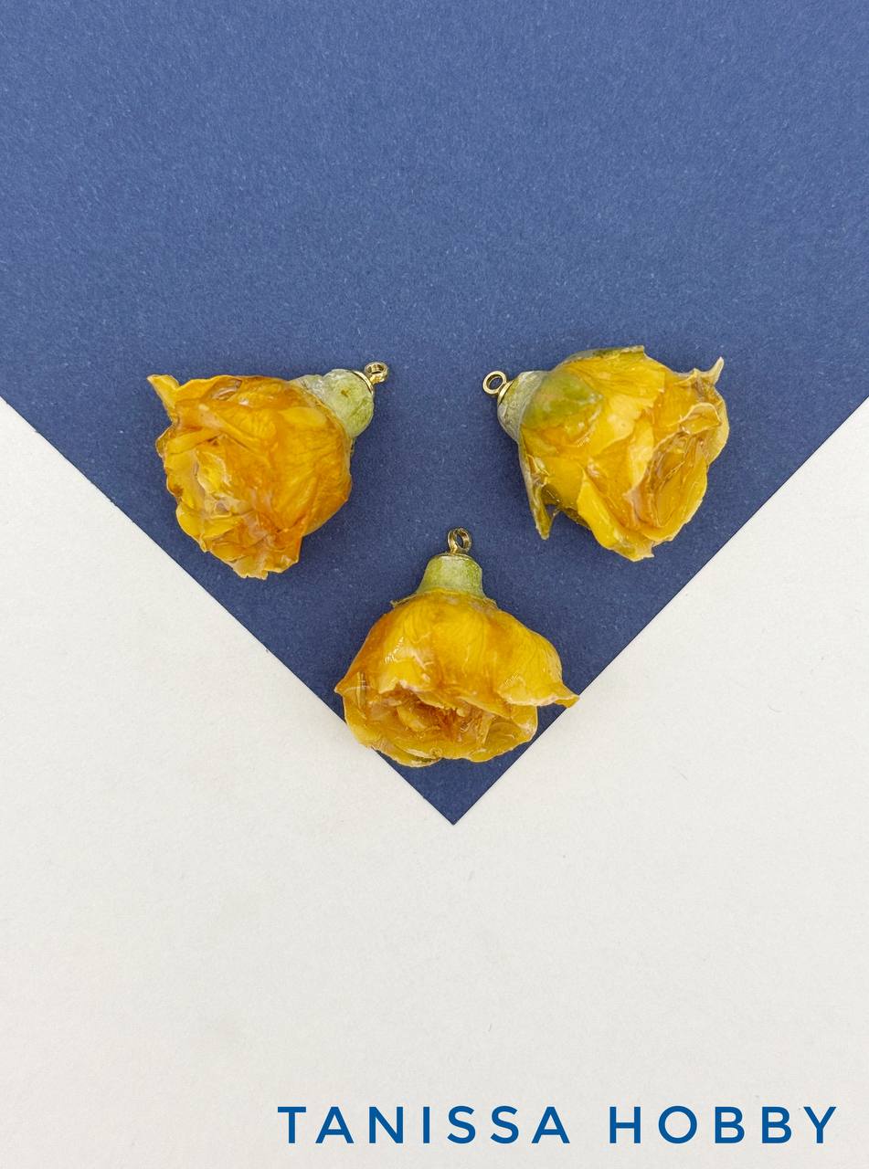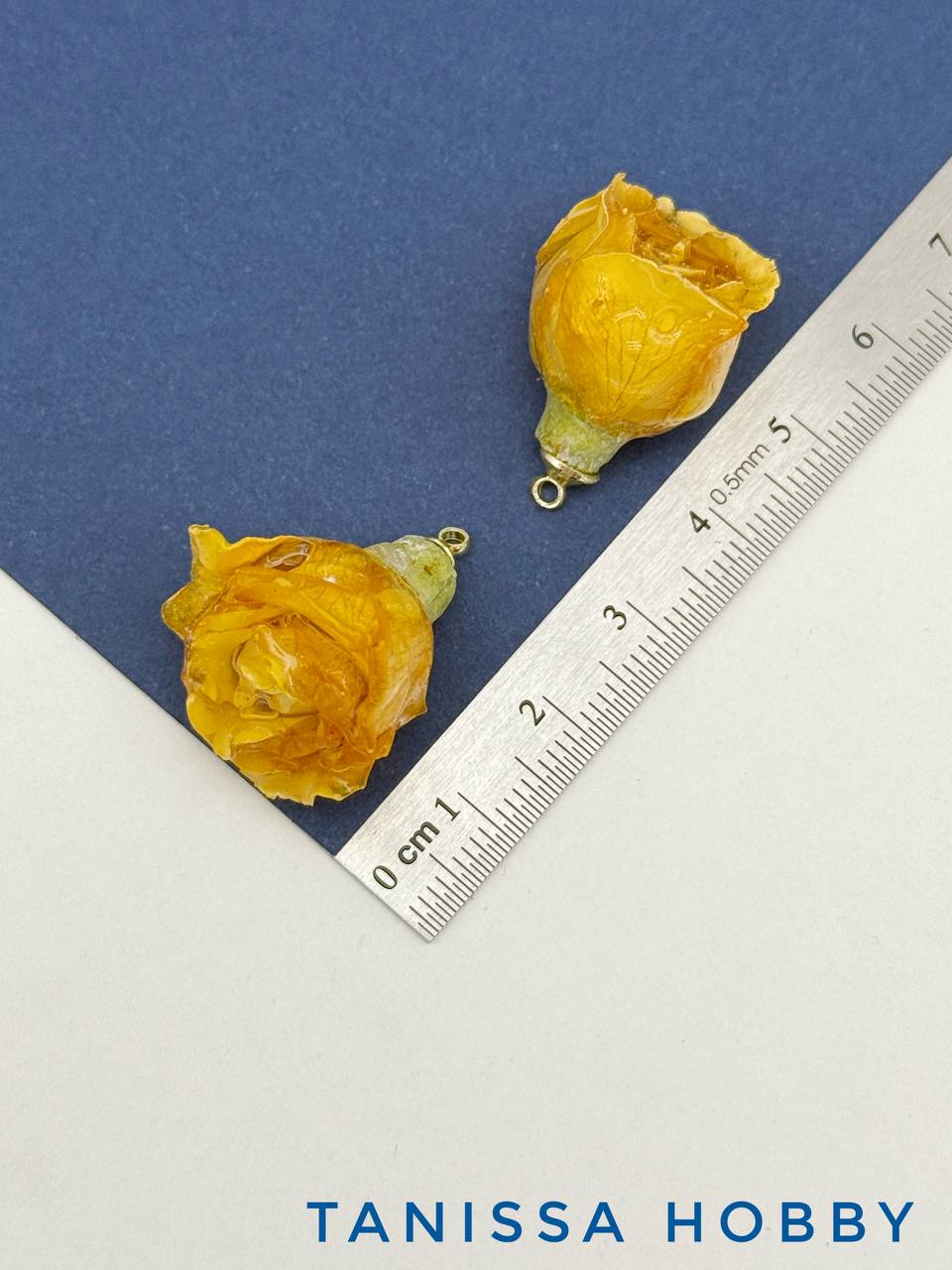 Подвеска цветок, бутон, роза в смоле, яркий желтый, позолота, ЦВ016