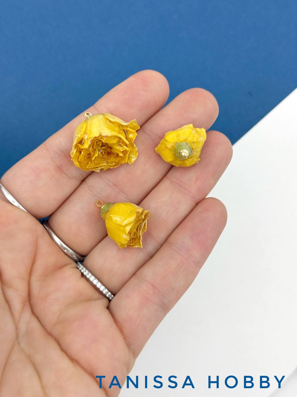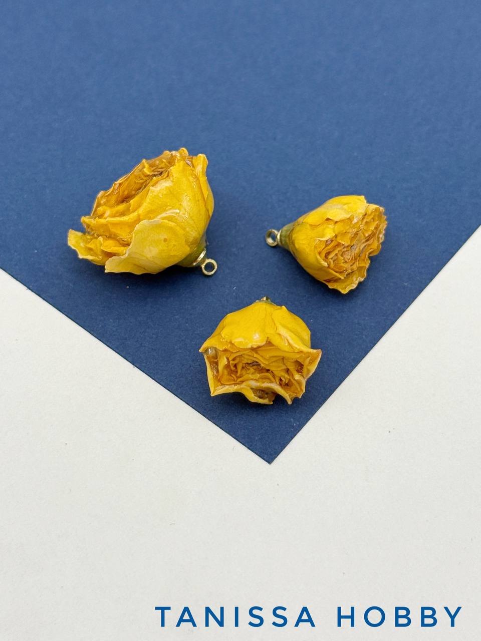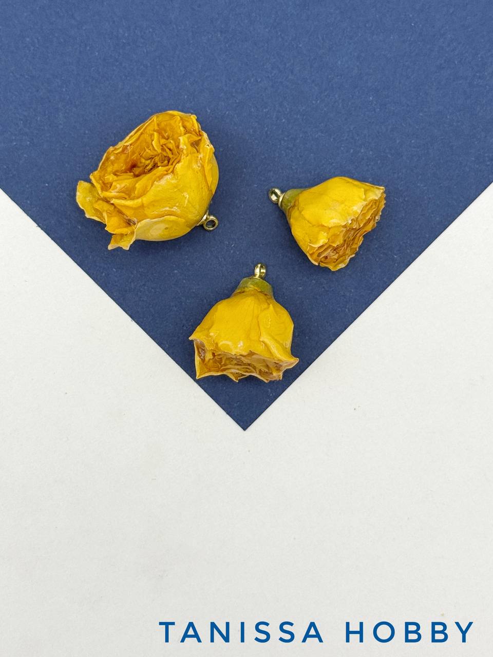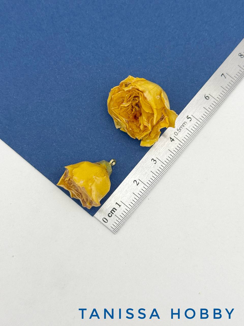 Подвеска цветок, бутон, роза в смоле, желтый, позолота, ЦВ019