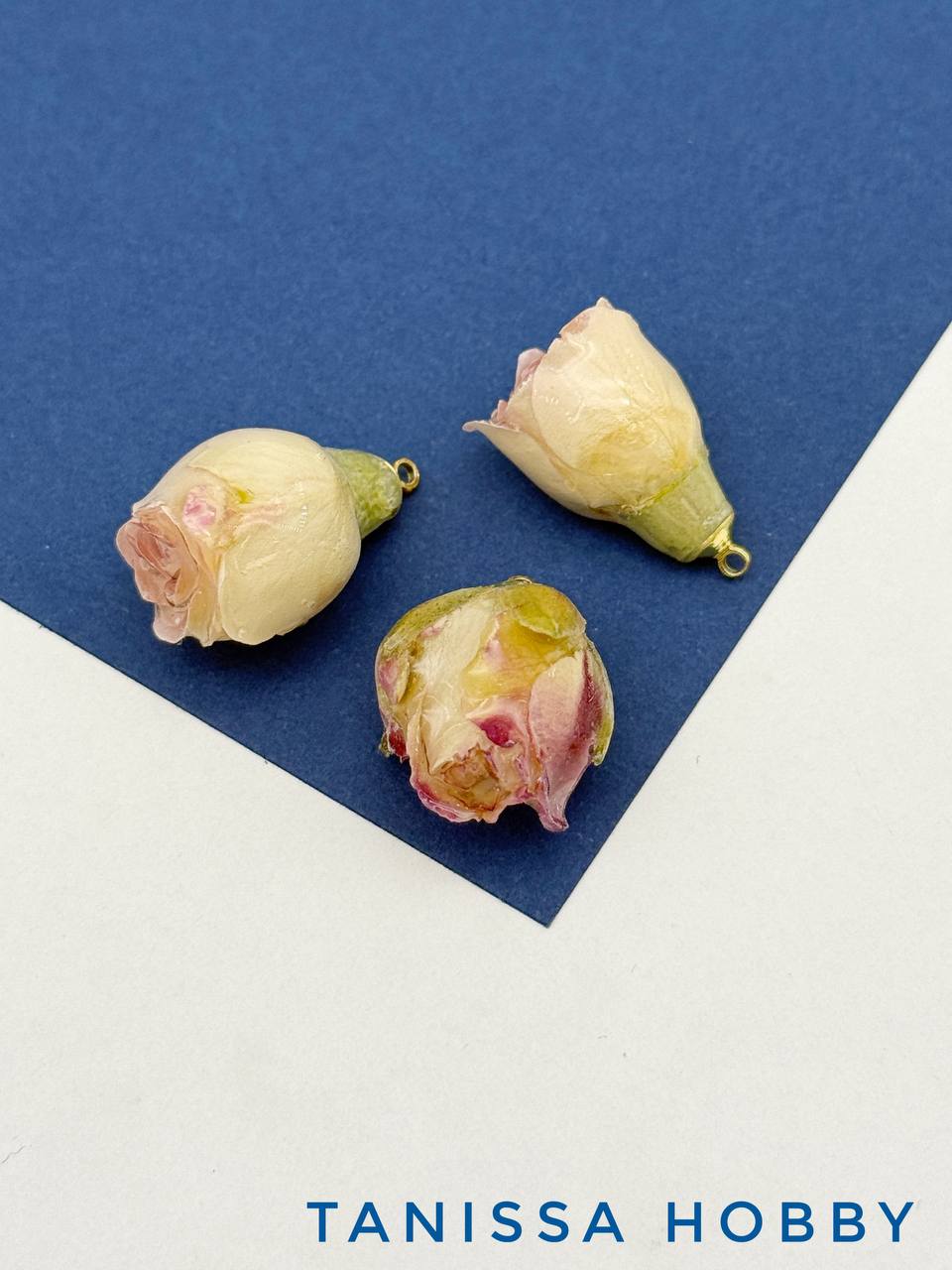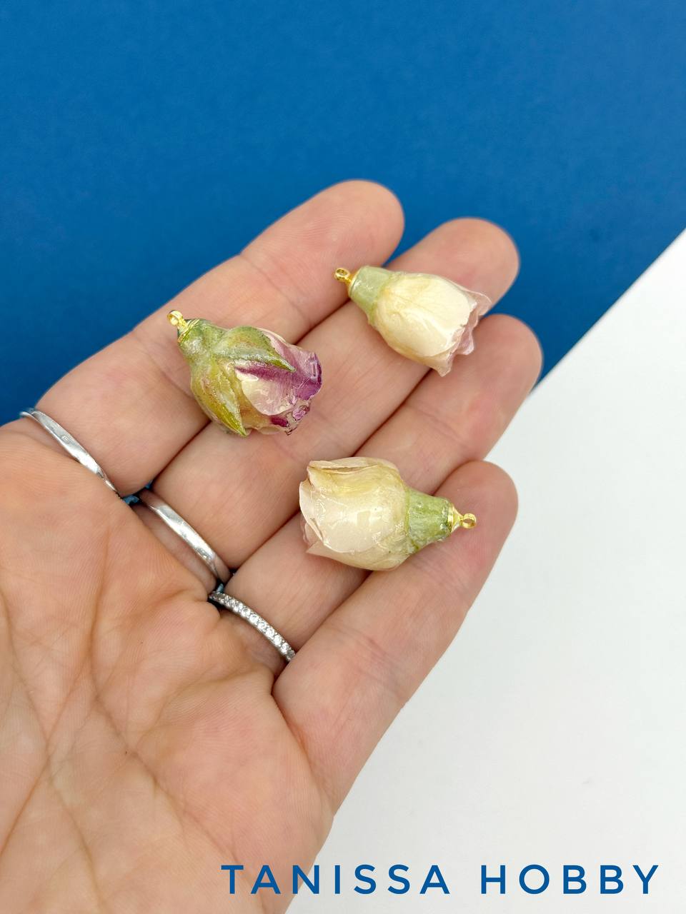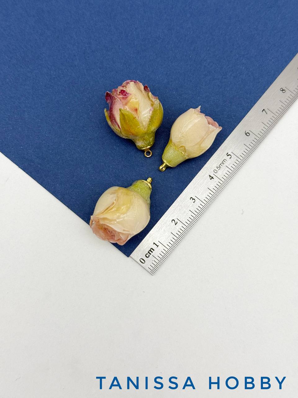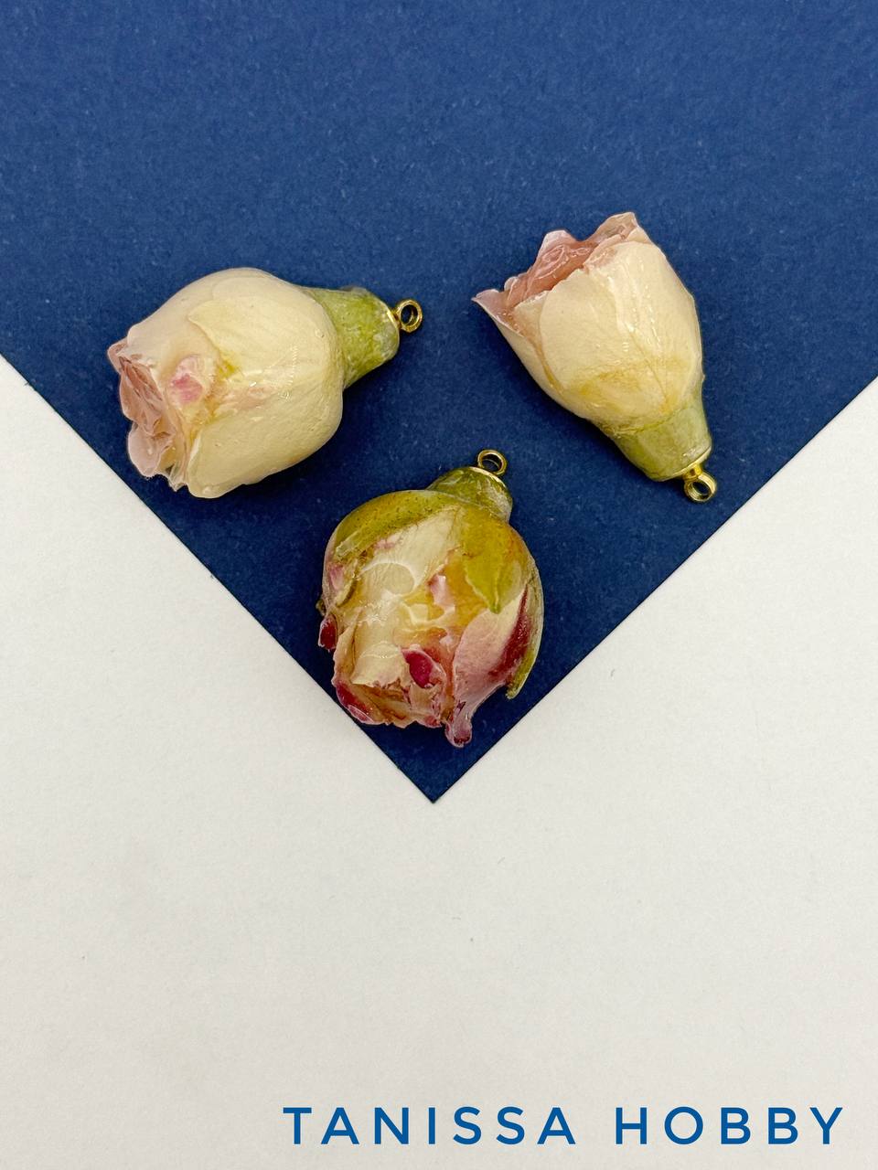 -Подвеска цветок, бутон, роза в смоле, белый розовый, позолота, ЦВ021