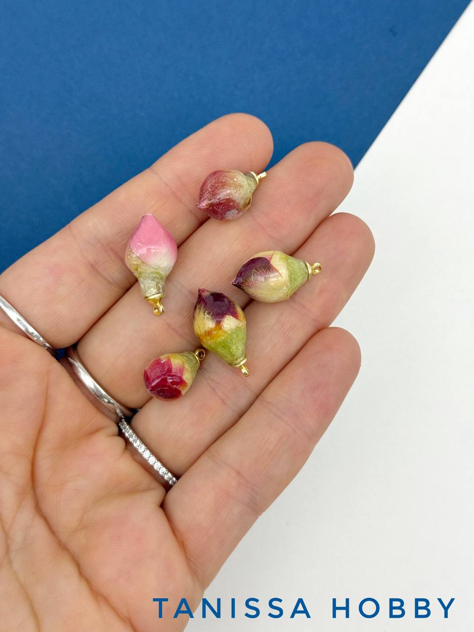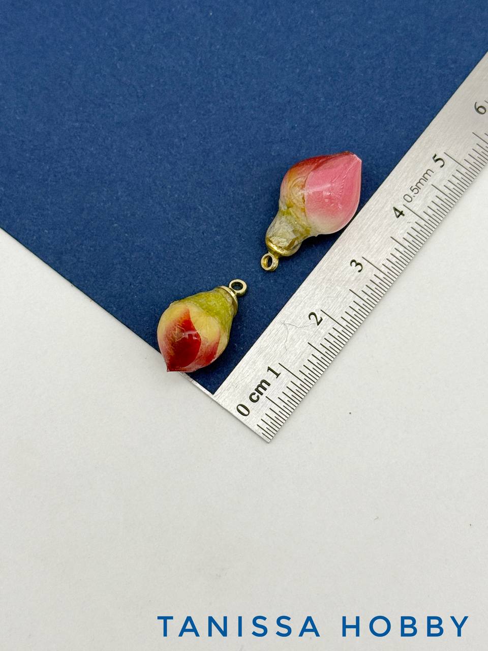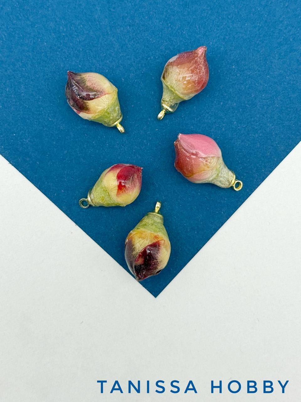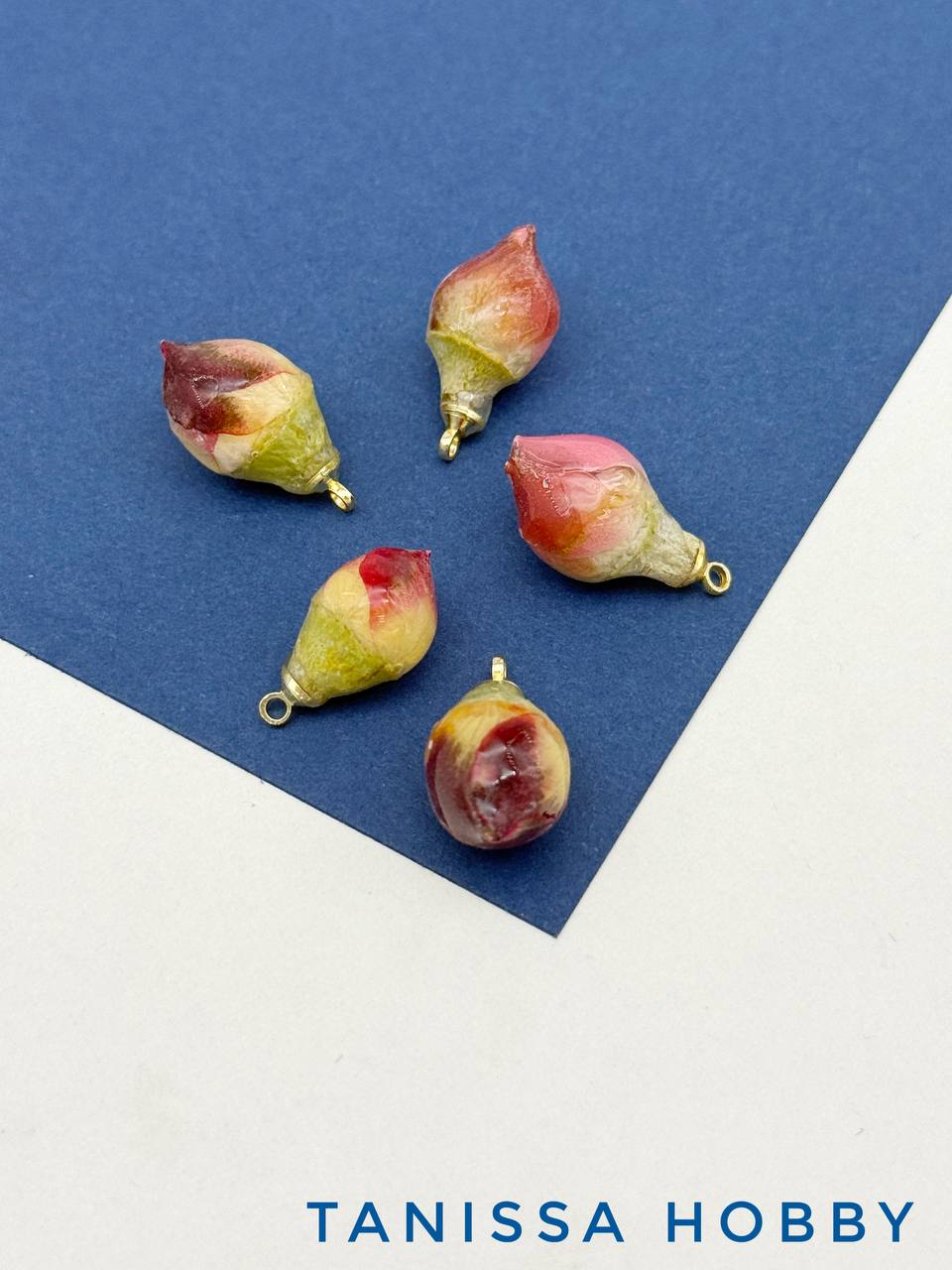 • Подвеска цветок, бутон в смоле, синий, позолота, П035