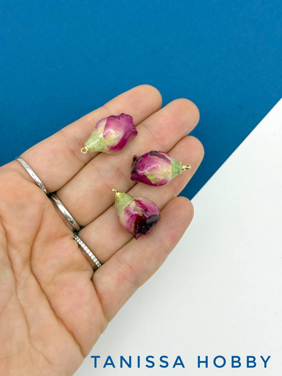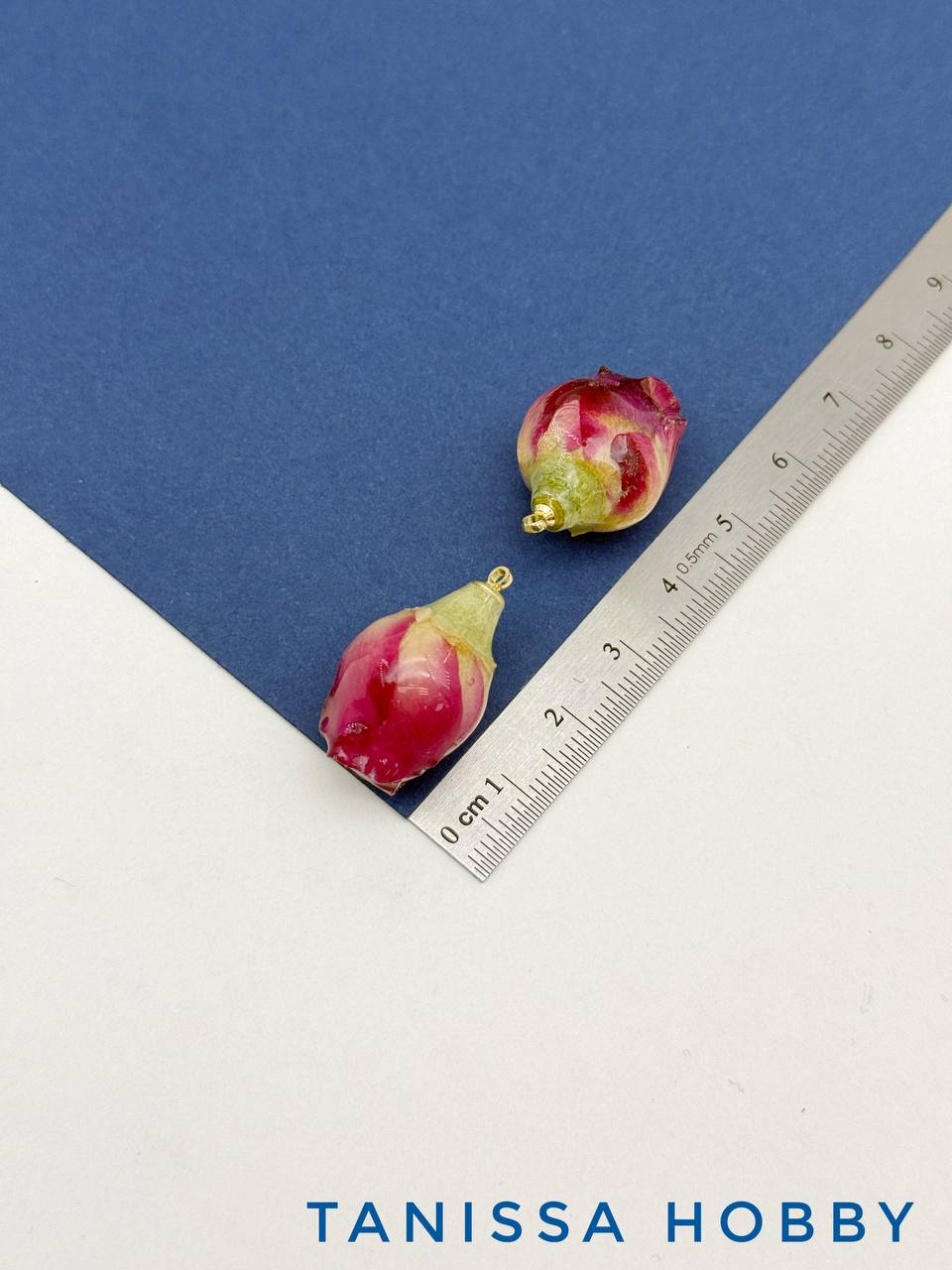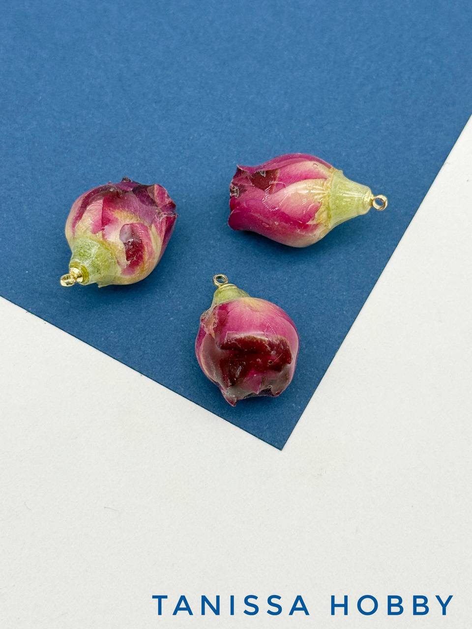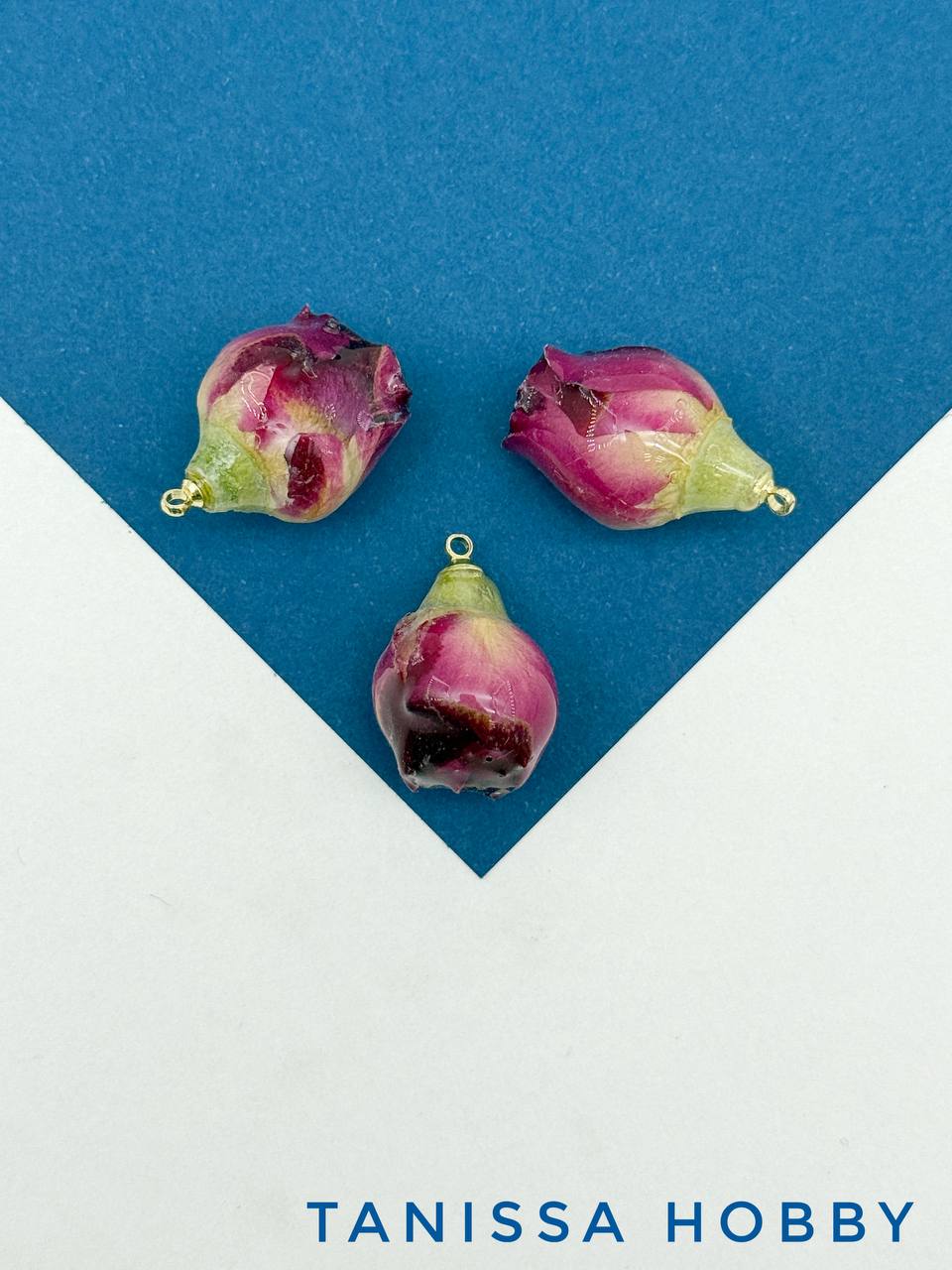 Подвеска цветок, бутон, роза в смоле, бордовый, позолота, ЦВ033