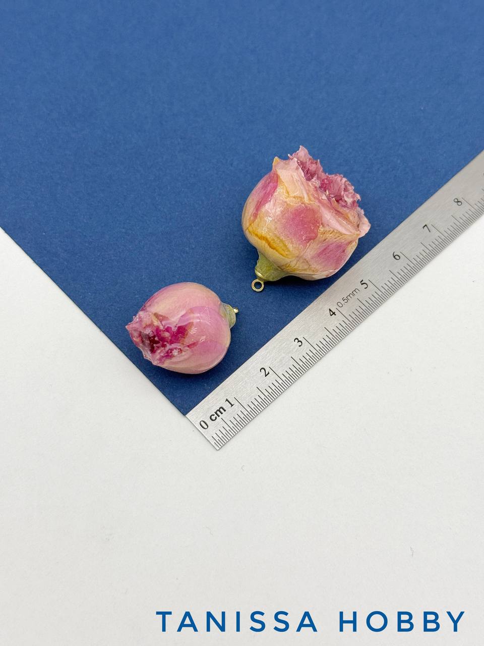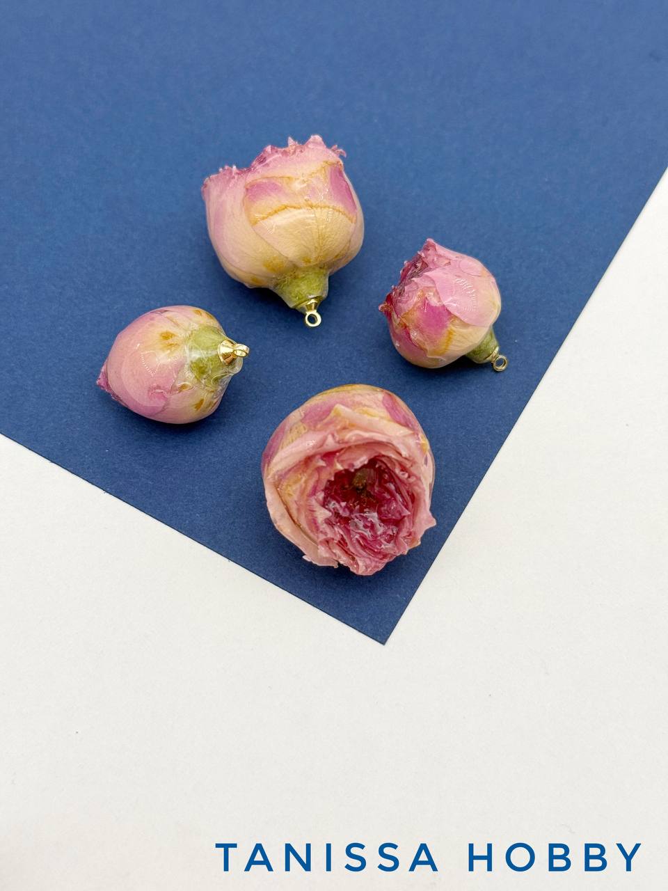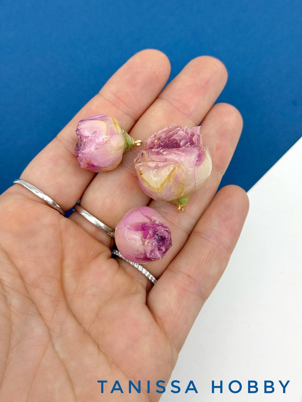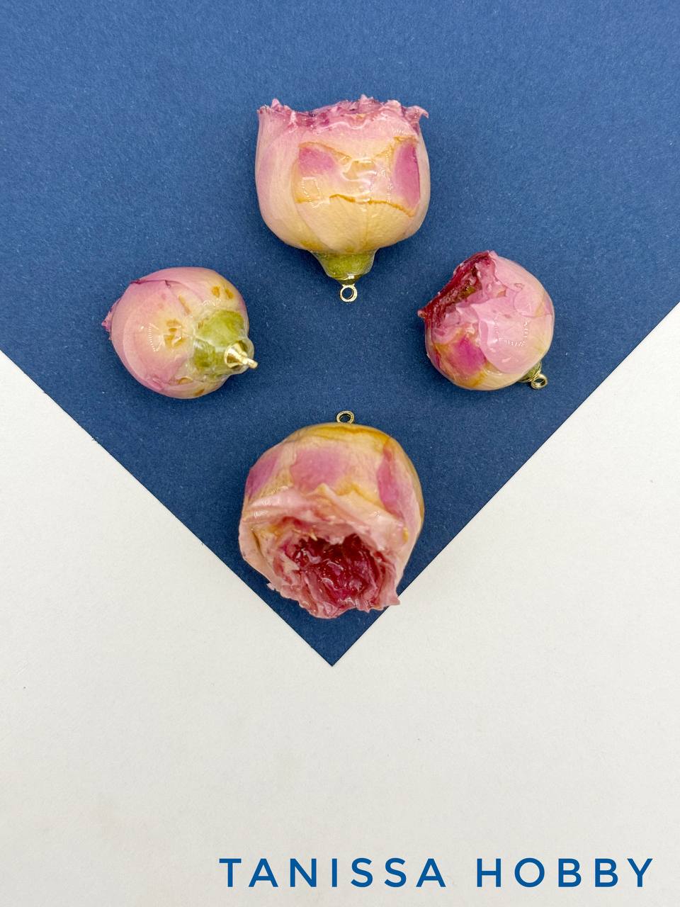 Подвеска цветок, бутон, роза в смоле, светлый розовый, позолота, ЦВ035