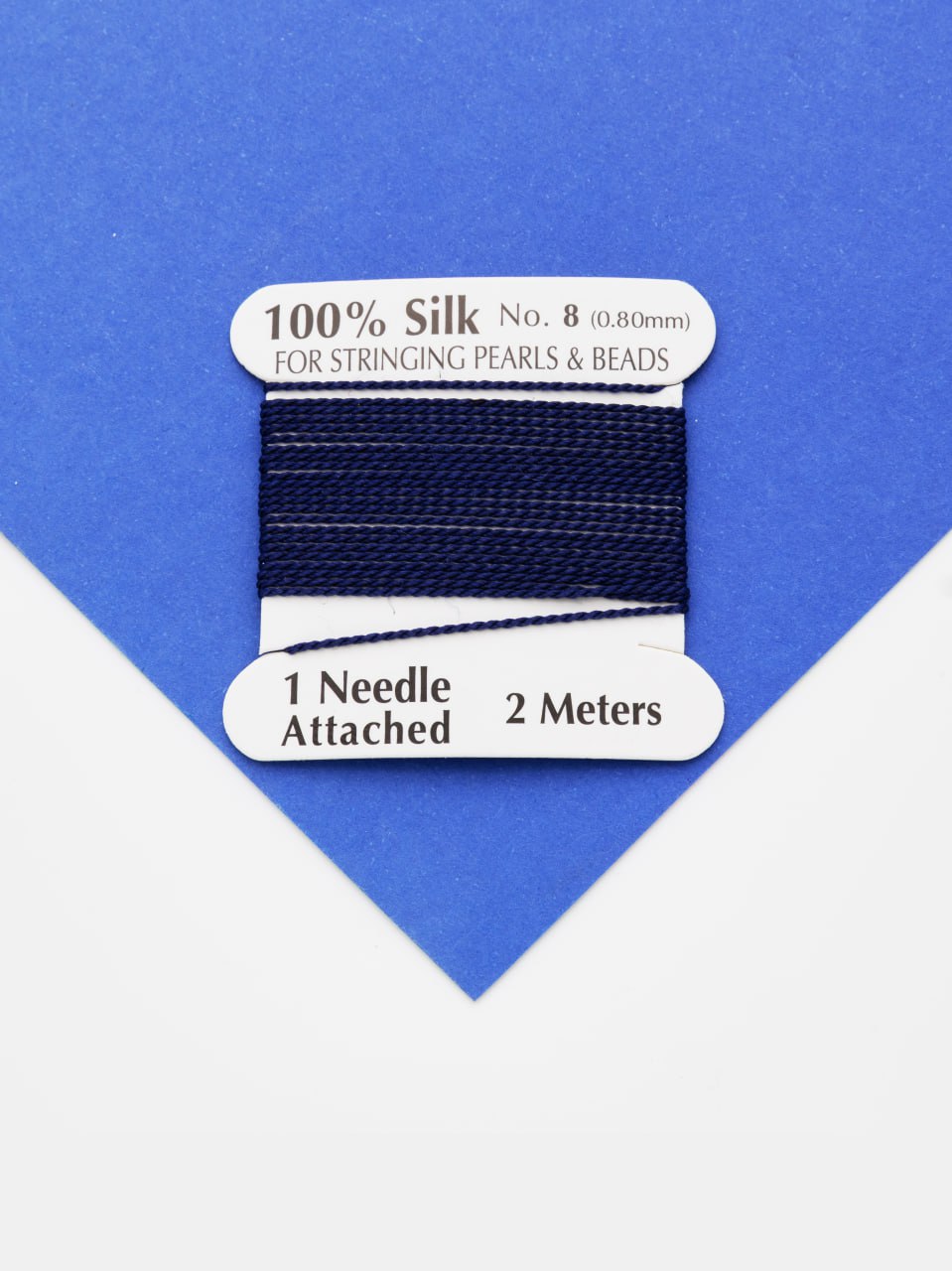 Нить для жемчуга и камней, шелк, 0,8мм, темный синий, катушка 2м + игла в комплекте, Ц089