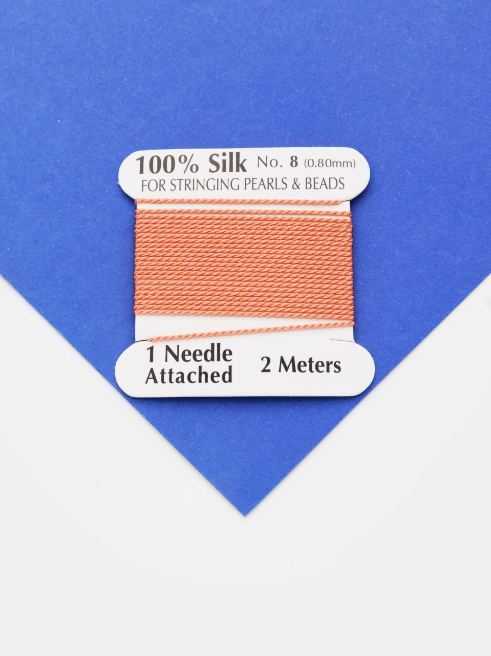 Нить для жемчуга и камней, шелк, 0,8мм, персиковый, катушка 2м + игла в комплекте, Ц092