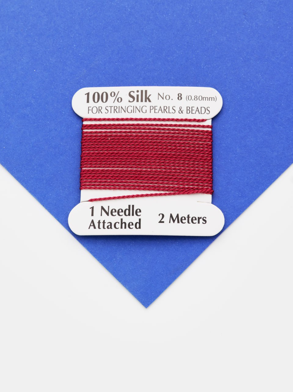 Нить для жемчуга и камней, шелк, 0,8мм, малиновый бордовый, катушка 2м + игла в комплекте, Ц088