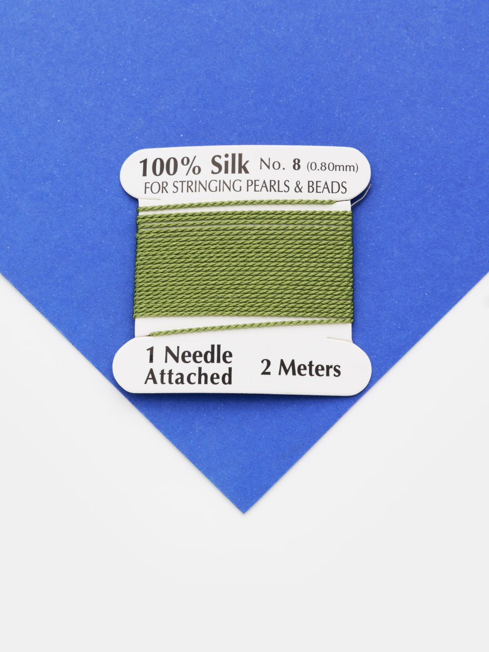 Нить для жемчуга и камней, шелк, 0,8мм, зеленый хаки, катушка 2м + игла в комплекте, Ц094