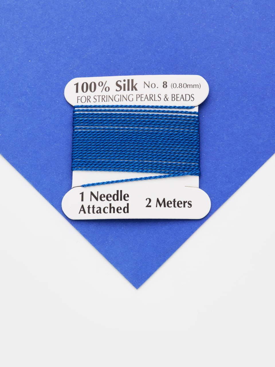 Нить для жемчуга и камней, шелк, 0,8мм, синий, катушка 2м + игла в комплекте, Ц090
