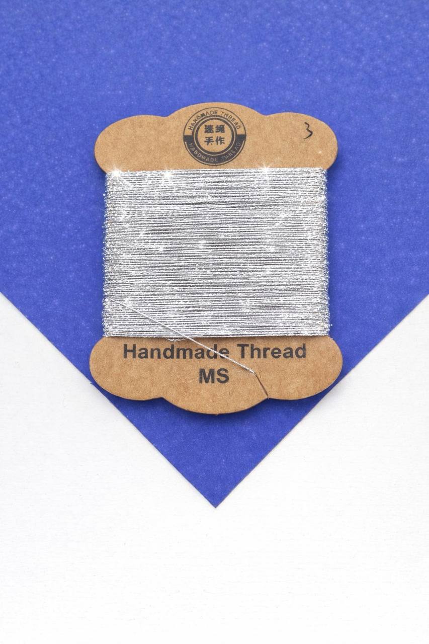 Нить для жемчуга и камней, 0,4мм, серебро металлик, люрекс, катушка 20м, Ц080