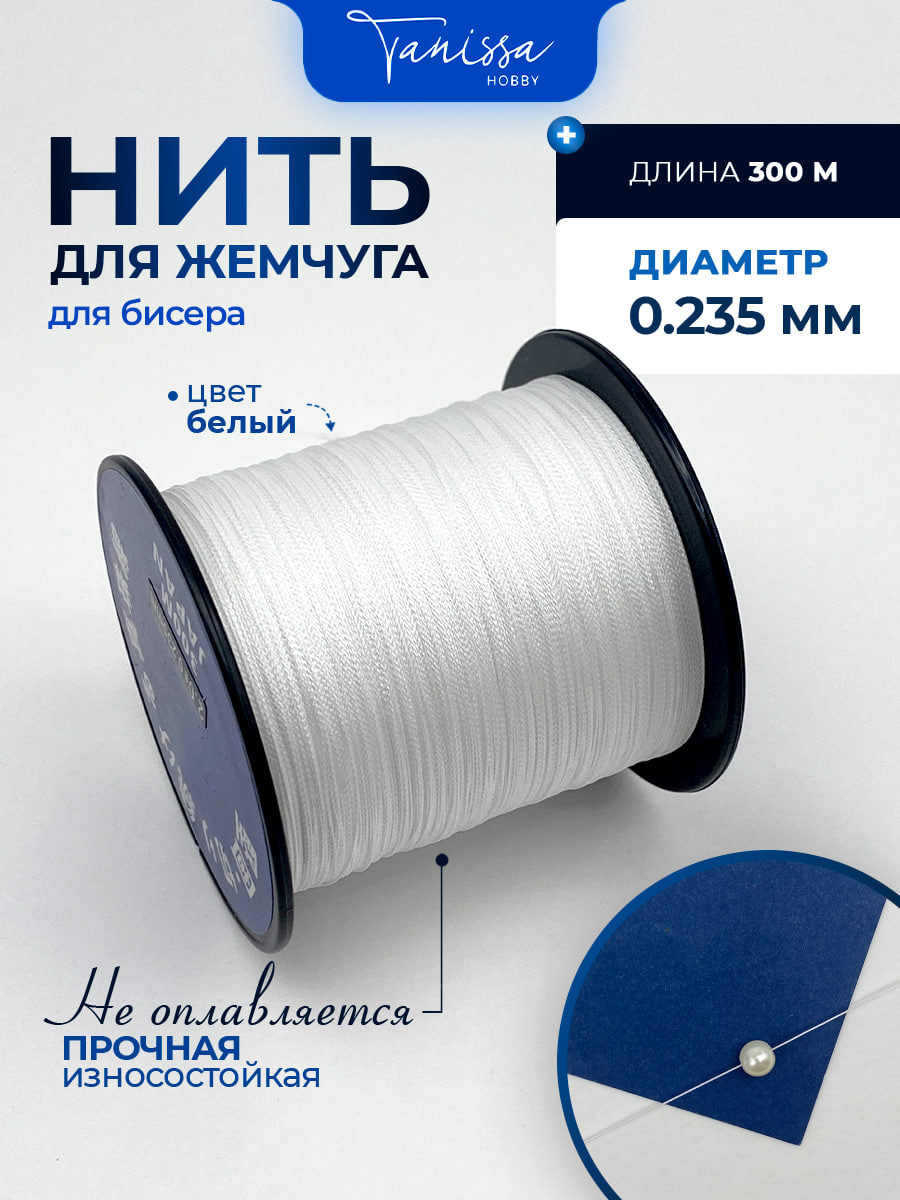 -Нить для жемчуга, для бисера, белый, #2,0, диаметр 0,235мм, катушка 300 метров, Ц039