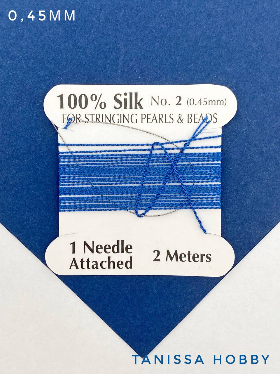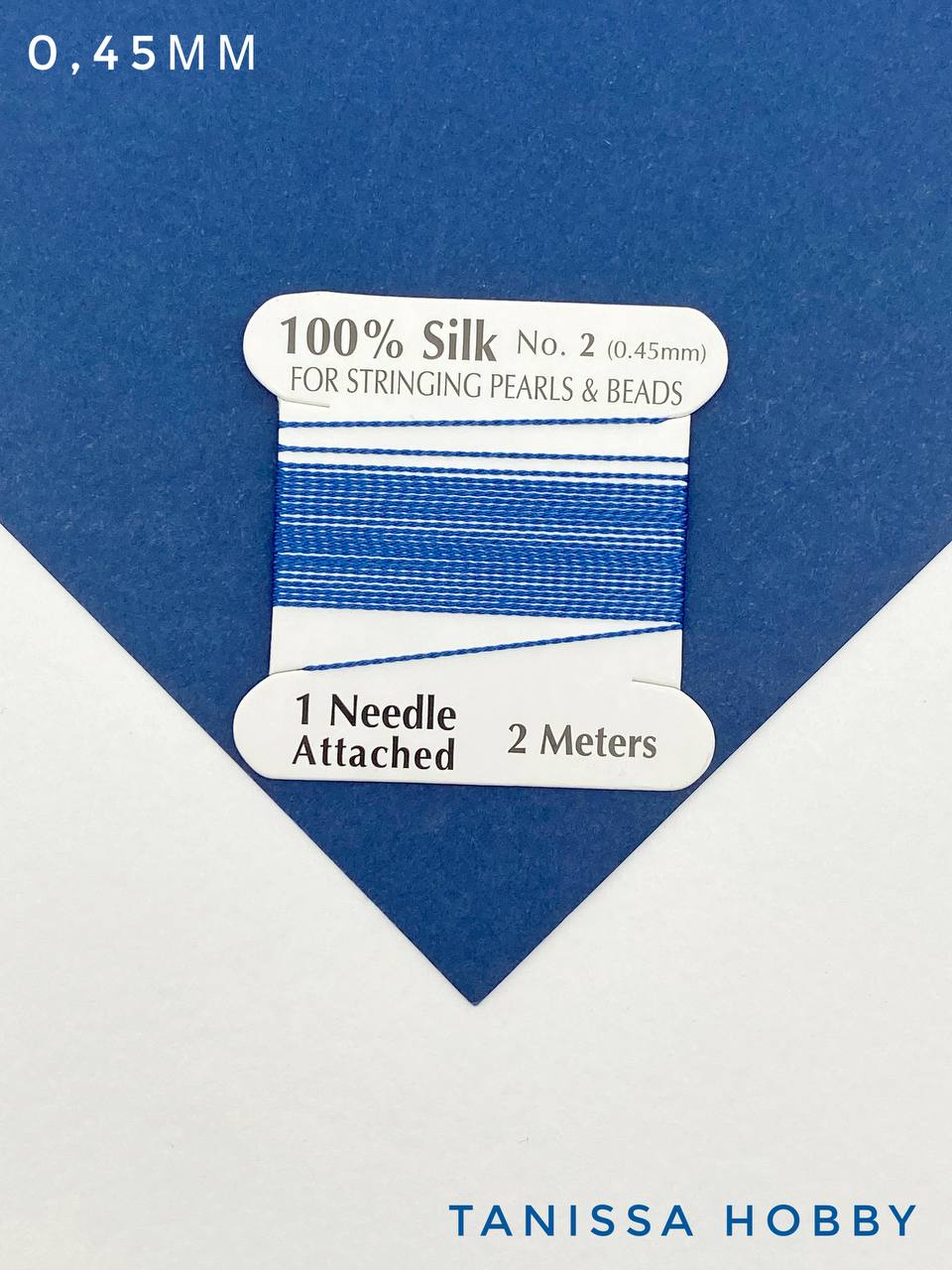 Нить для жемчуга и камней, шелк, 0,45мм, синий, катушка 2м + игла в комплекте, Ц050
