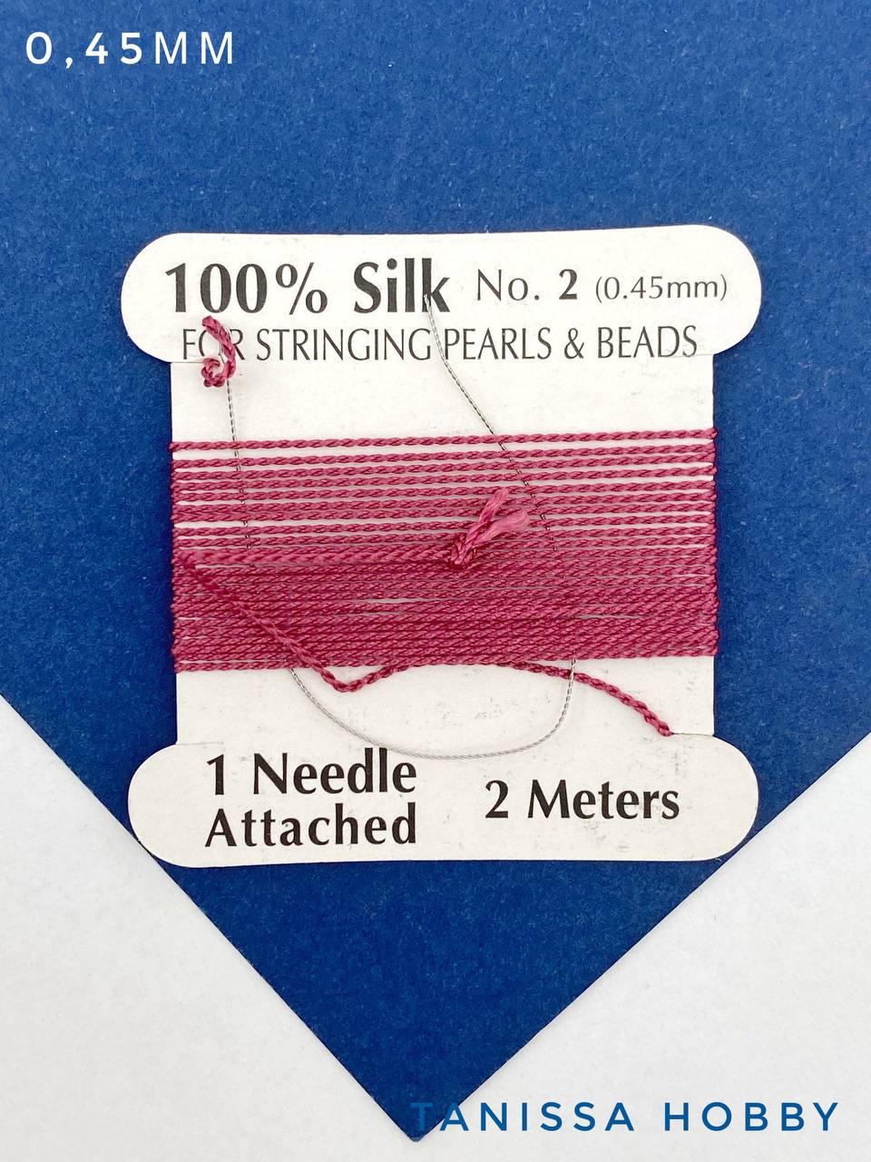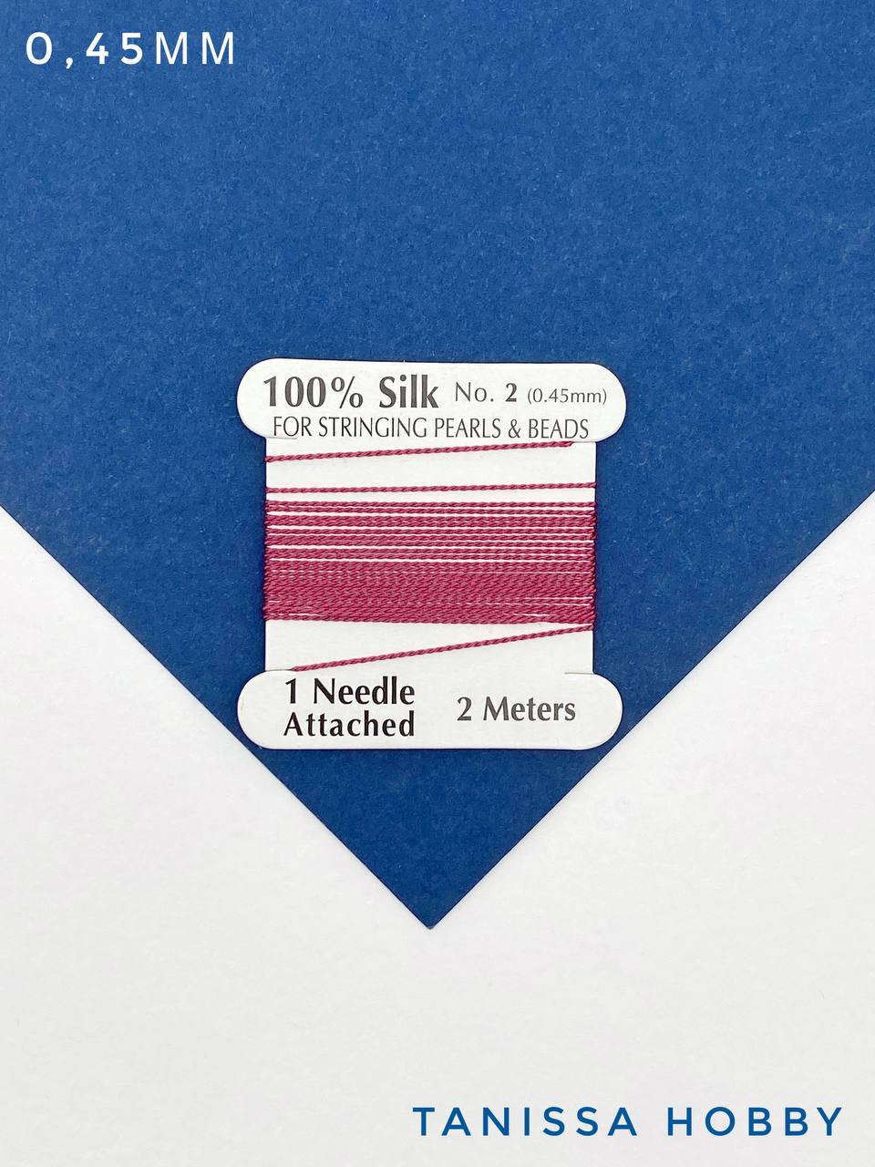 Толщина 0,45мм оптимальна для большинства отверстий в бусинах, а мягкая игла, которая идет в комплекте, делает процесс работы удобным и быстрым — без необходимости вдевать нитку самостоятельно.