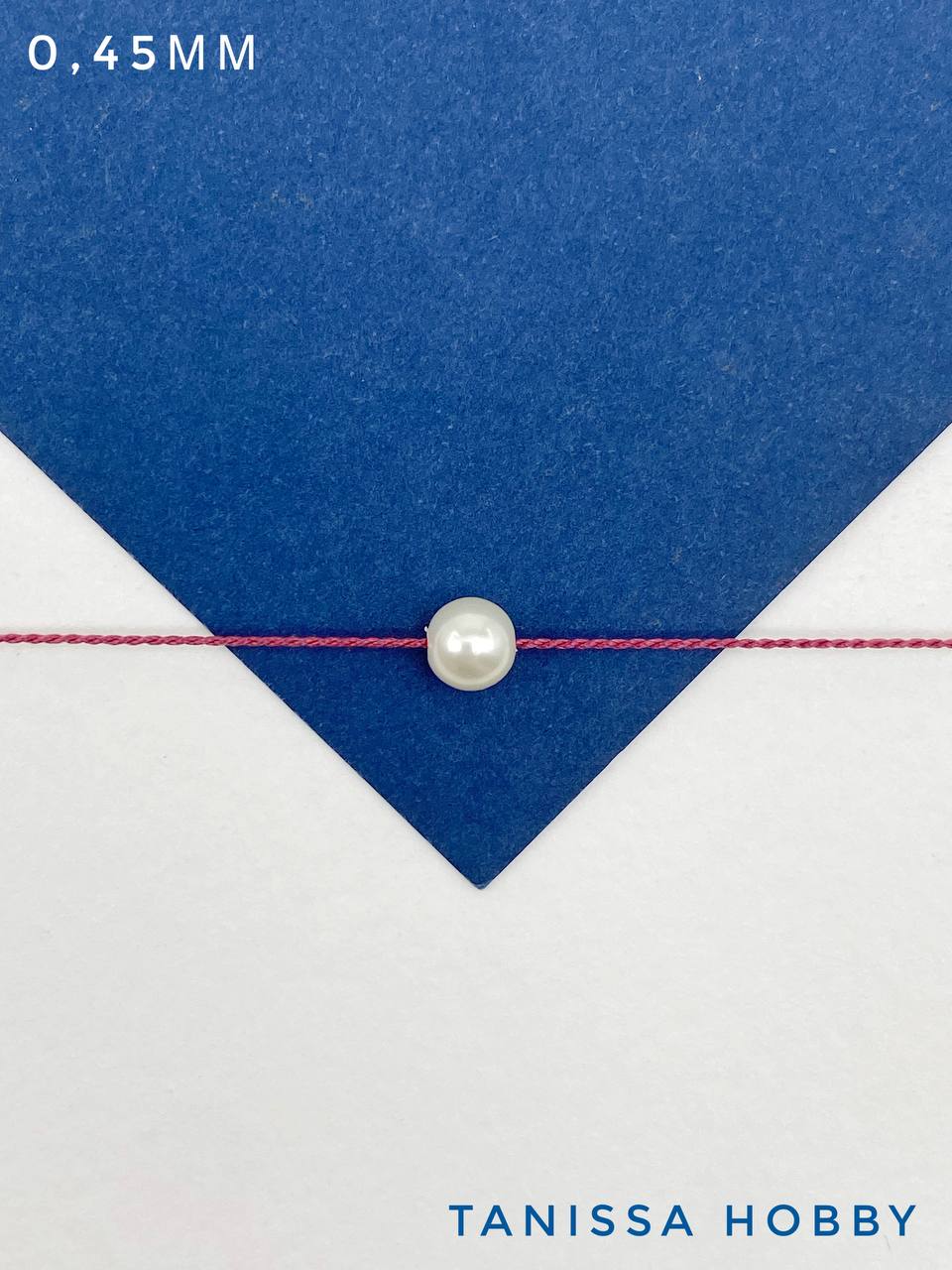 Малиновая нить для жемчуга и бусин, 0,45 мм, 2м (с иглой)