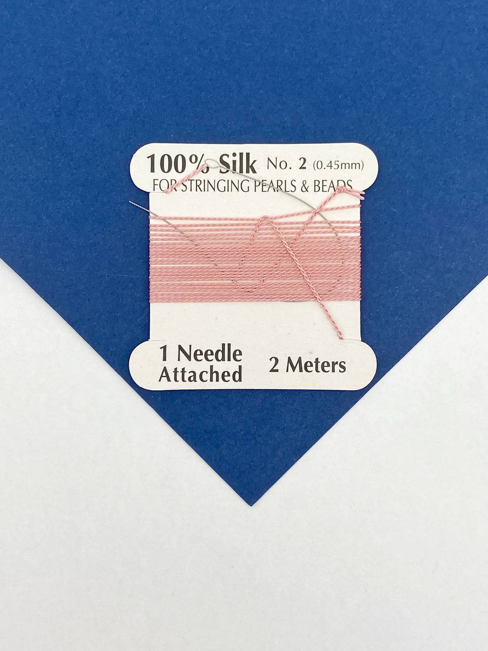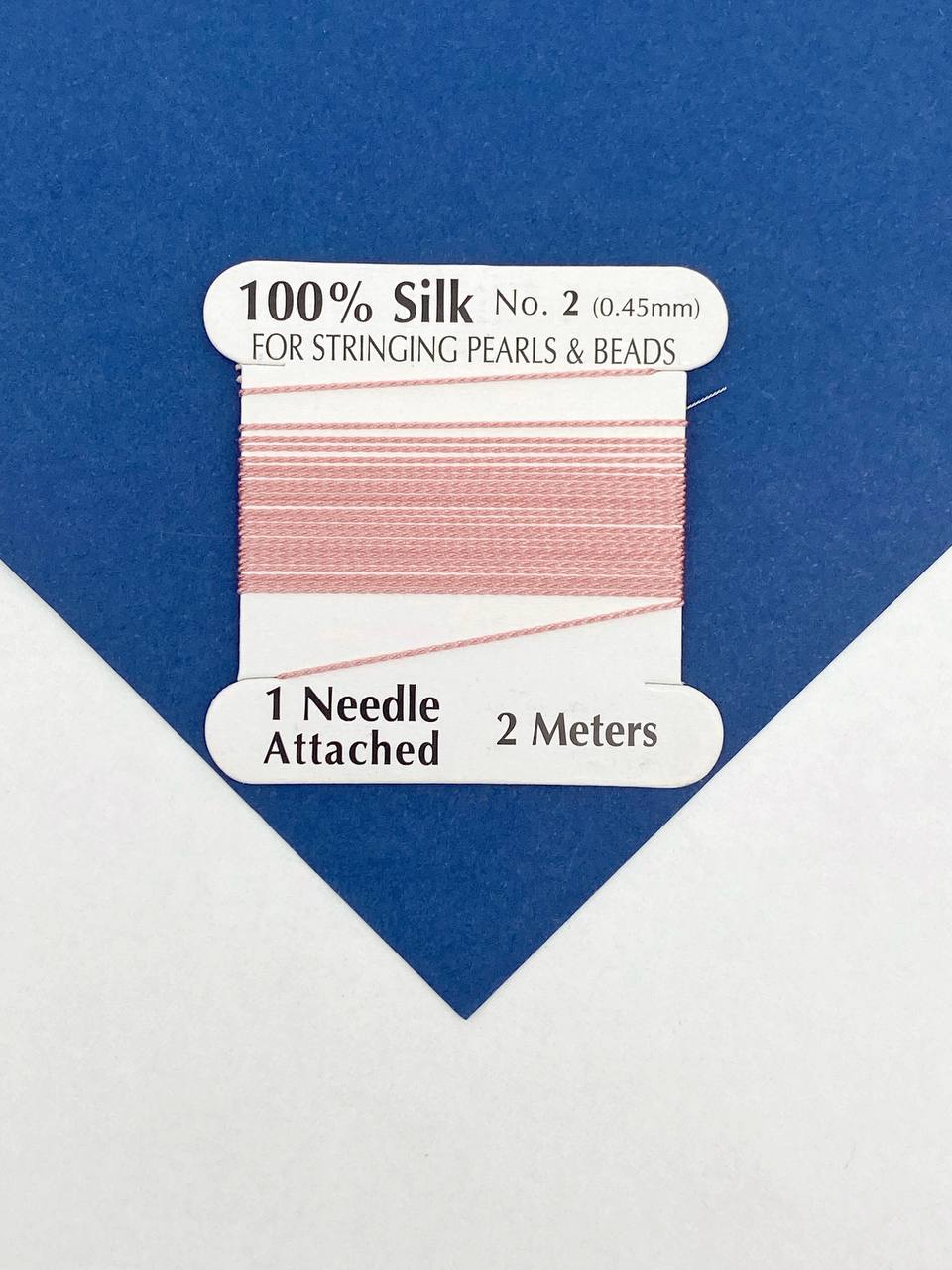 Розовая нить для жемчуга и бусин, 0,45 мм, 2м (с иглой)