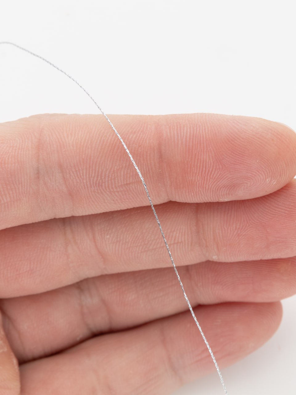 Нить для жемчуга и камней, №3 - 0,2мм, серебро металлик, люрекс, катушка 20м, Ц080
