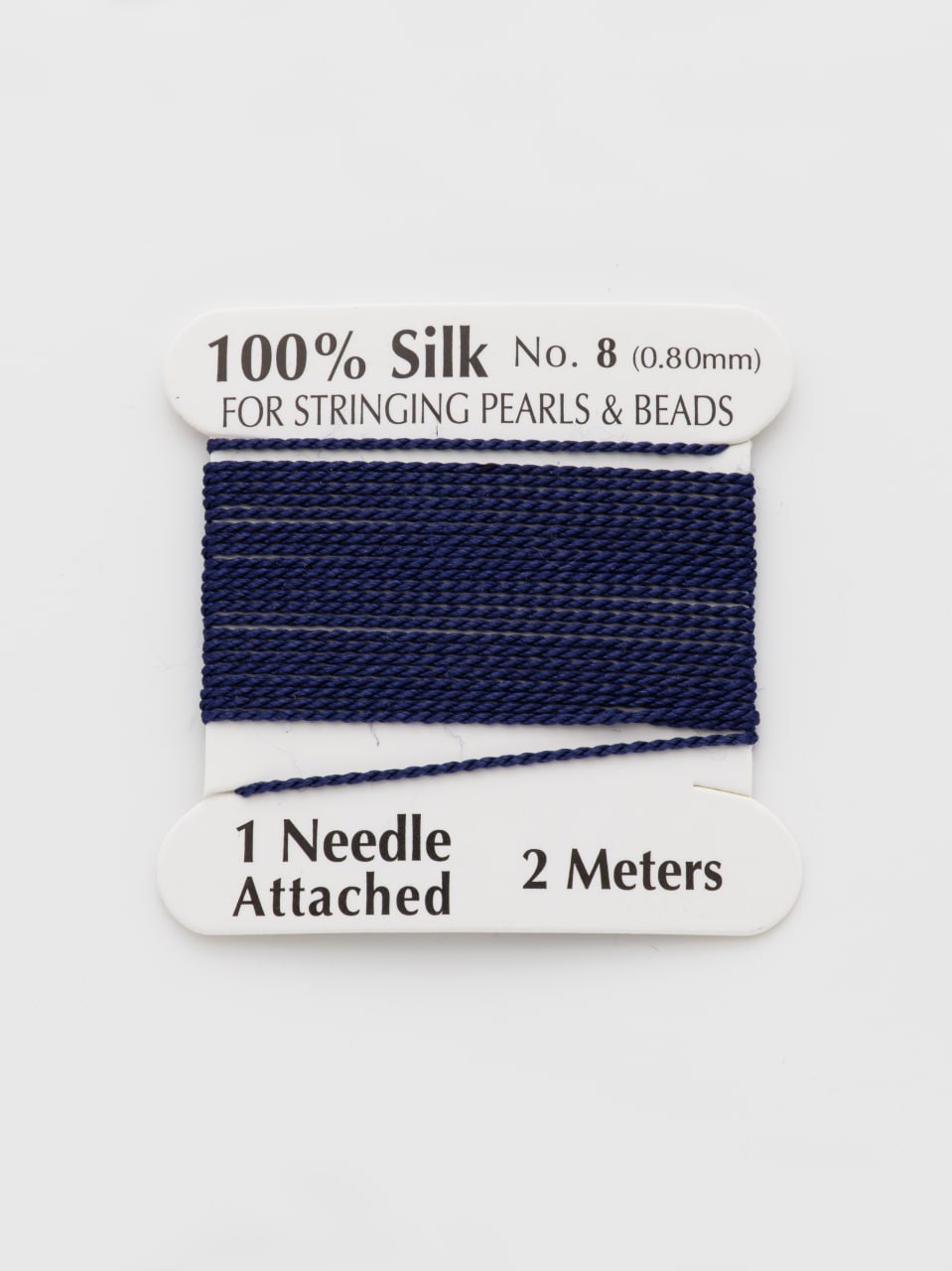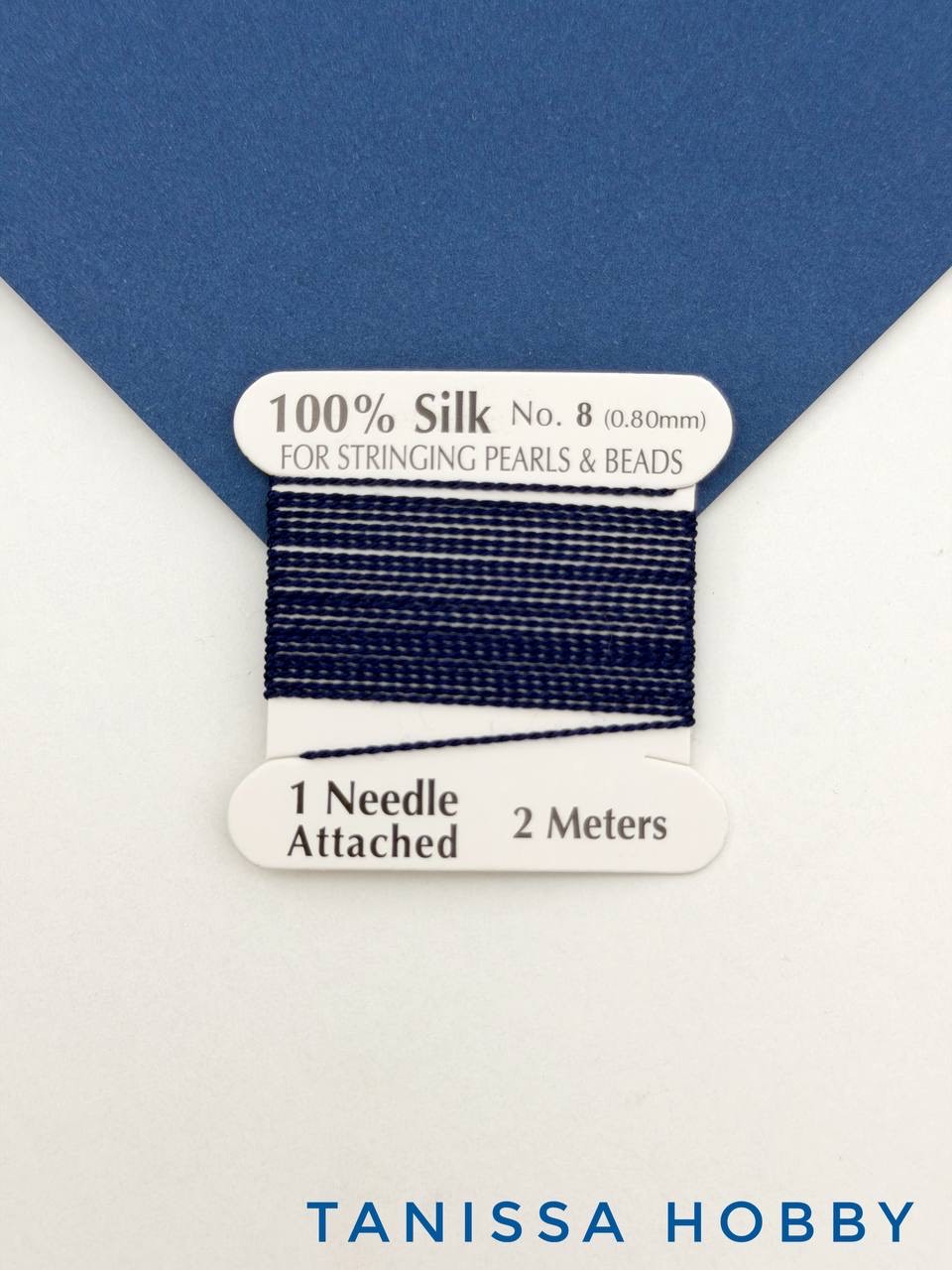 Нить для жемчуга и камней, шелк, 0,8мм, темный синий, катушка 2м + игла в комплекте, Ц089