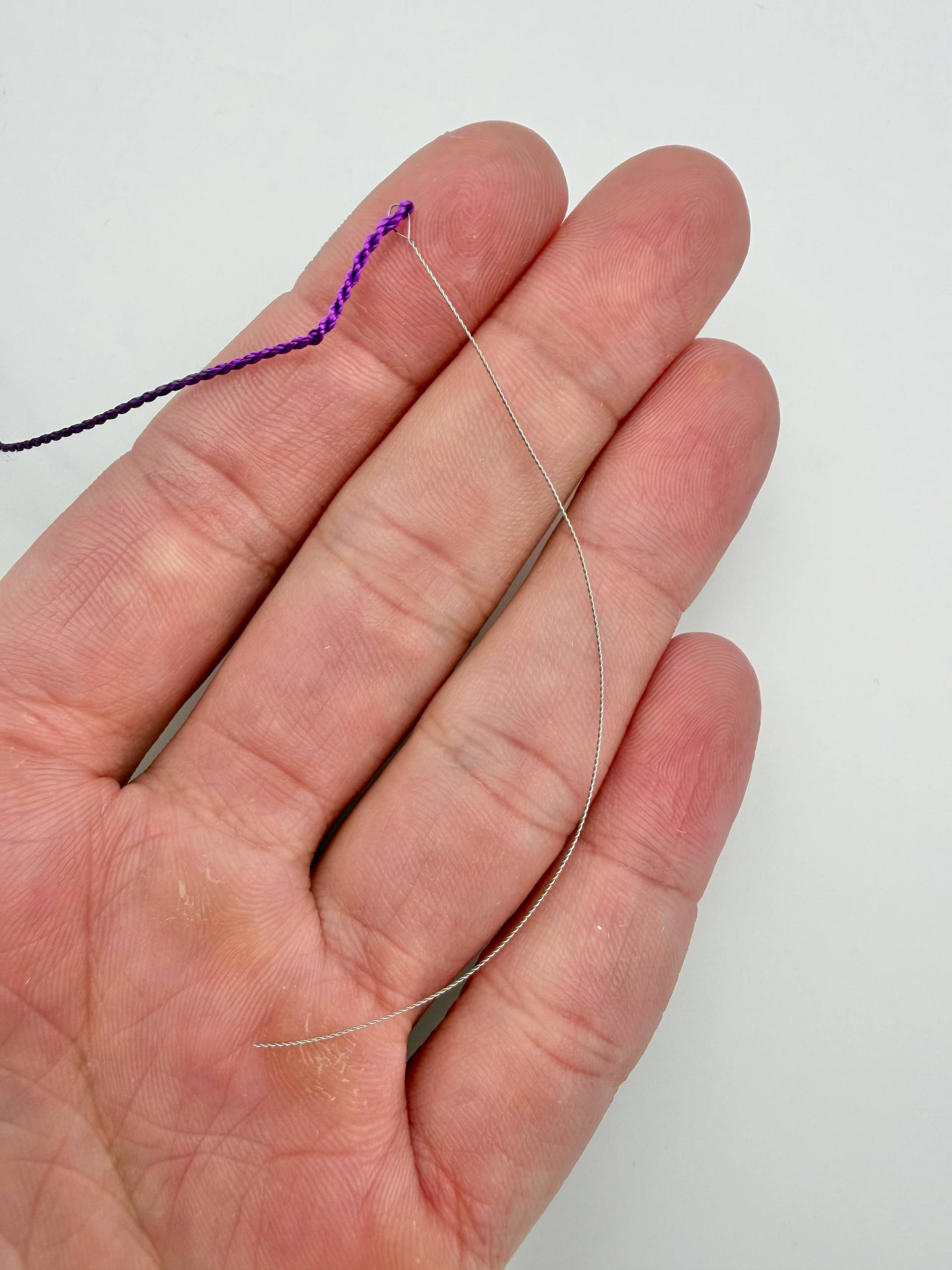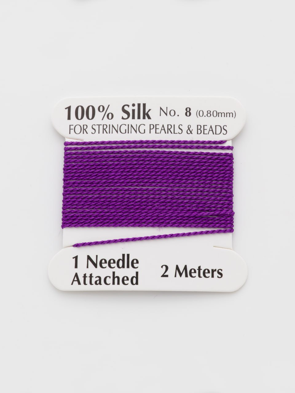 Нить для жемчуга и камней, шелк, 0,8мм, фиолетовый, катушка 2м + игла в комплекте, Ц091