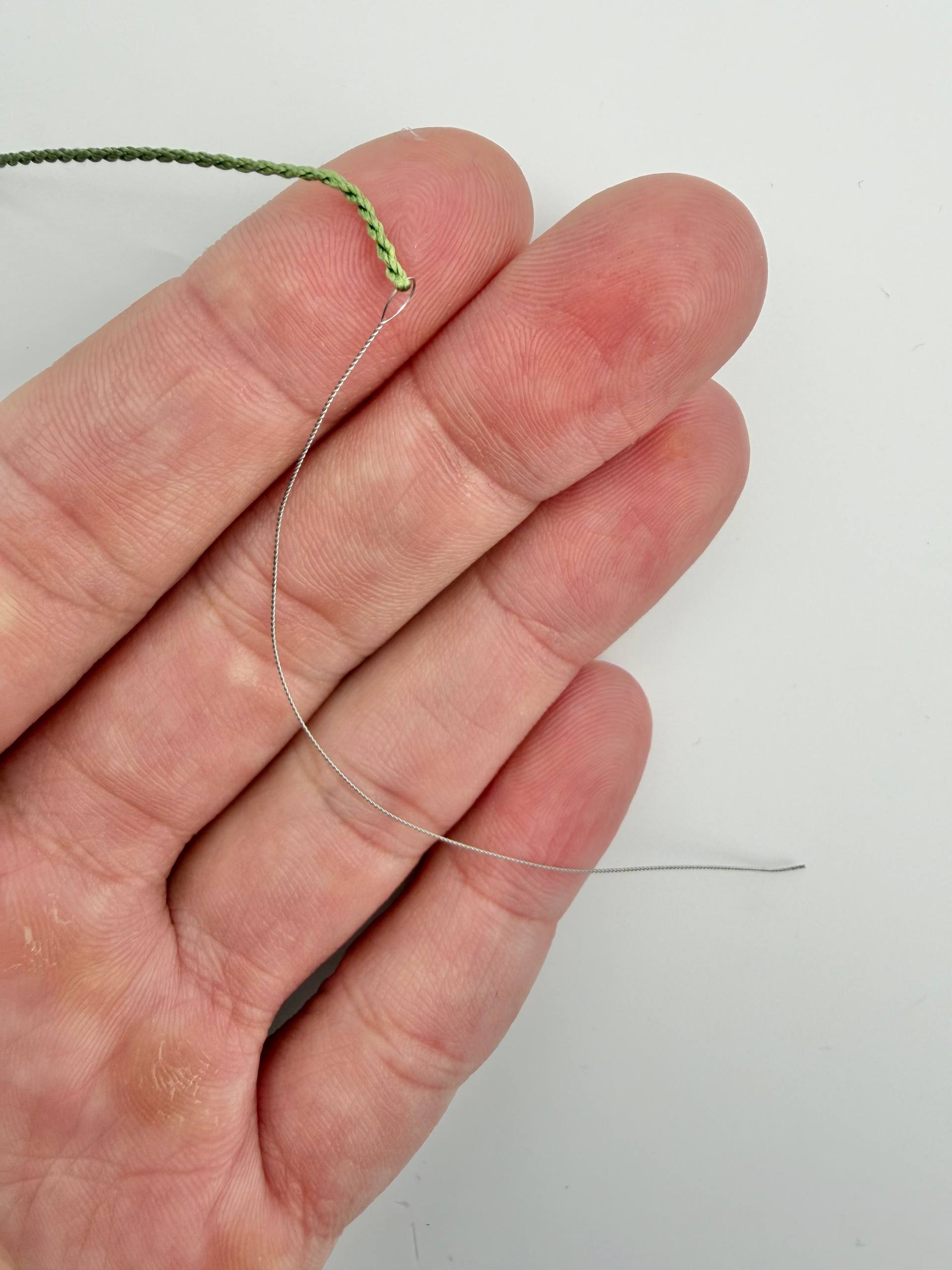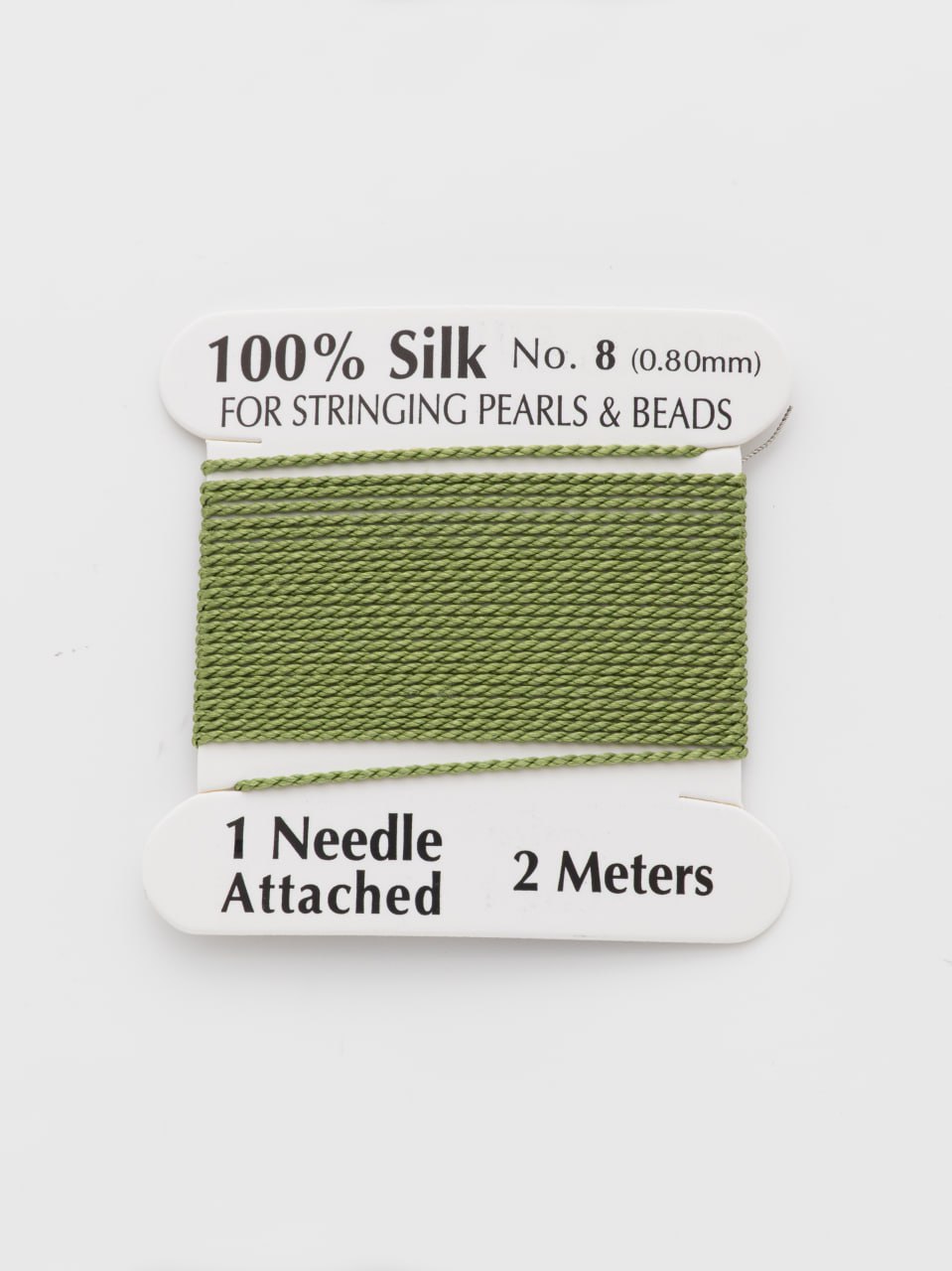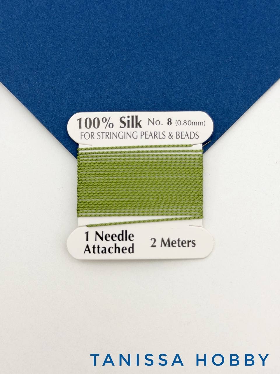 Нить для жемчуга и камней, шелк, 0,8мм, зеленый хаки, катушка 2м + игла в комплекте, Ц094