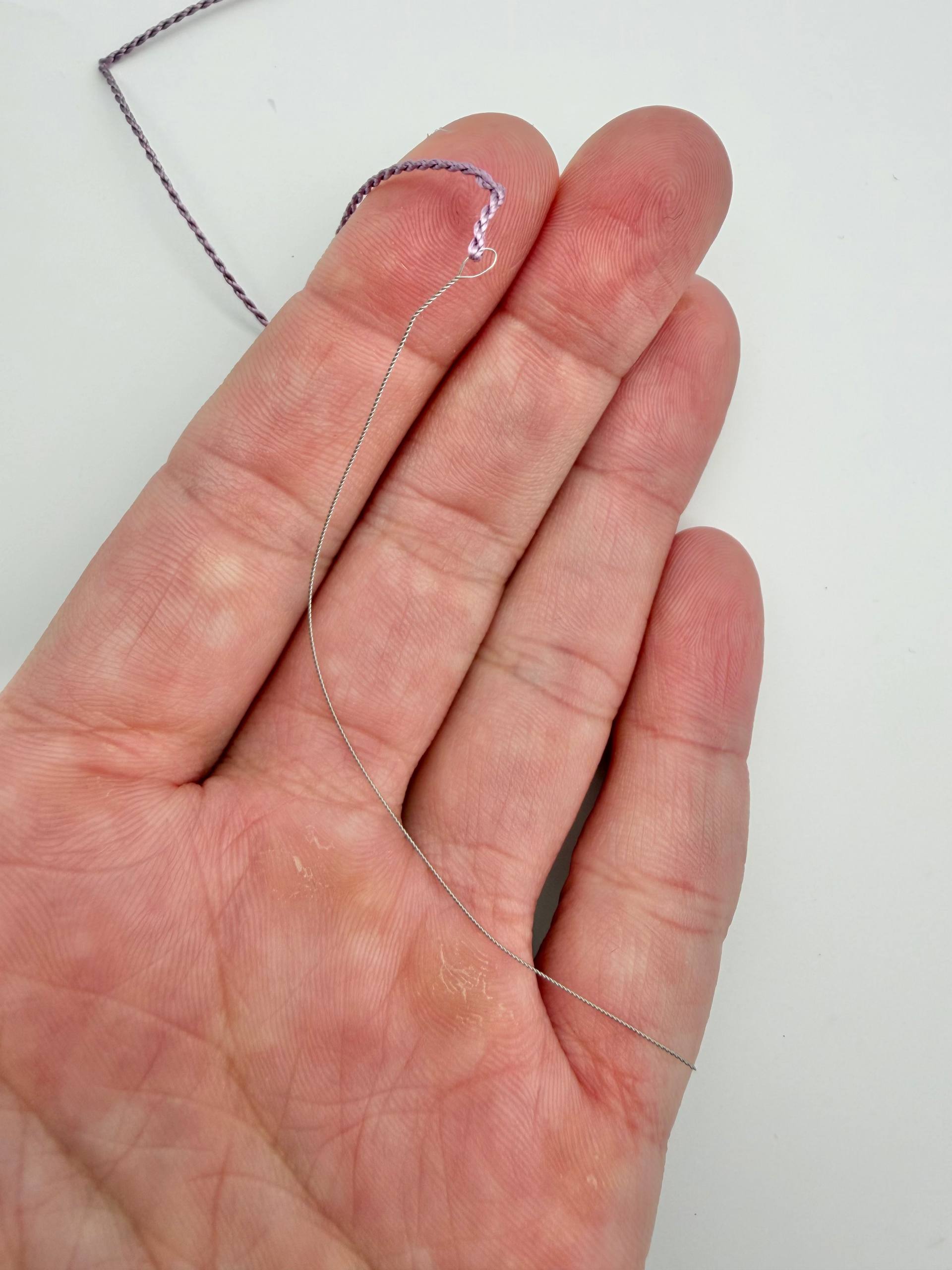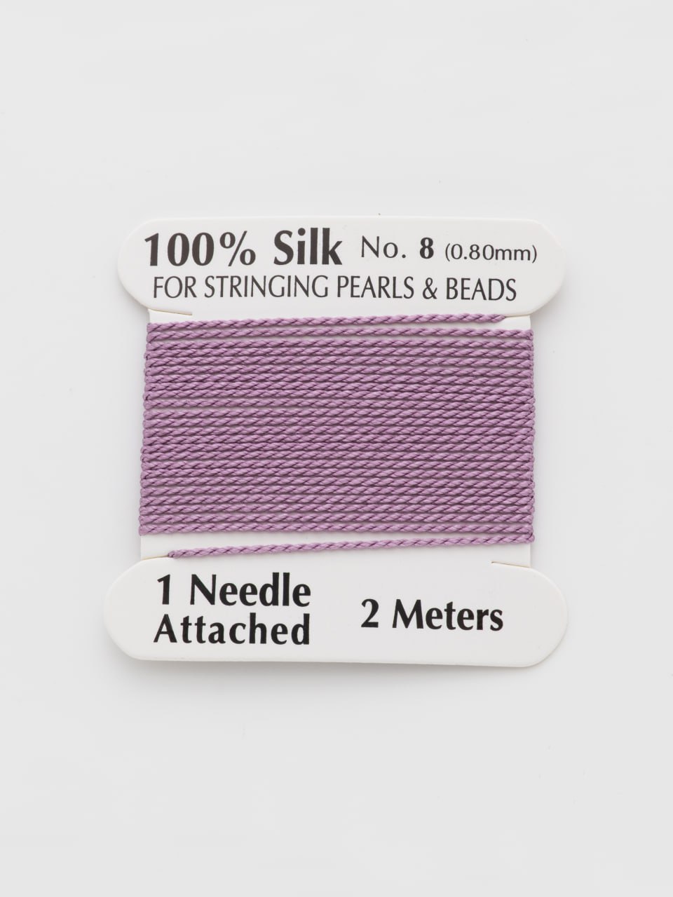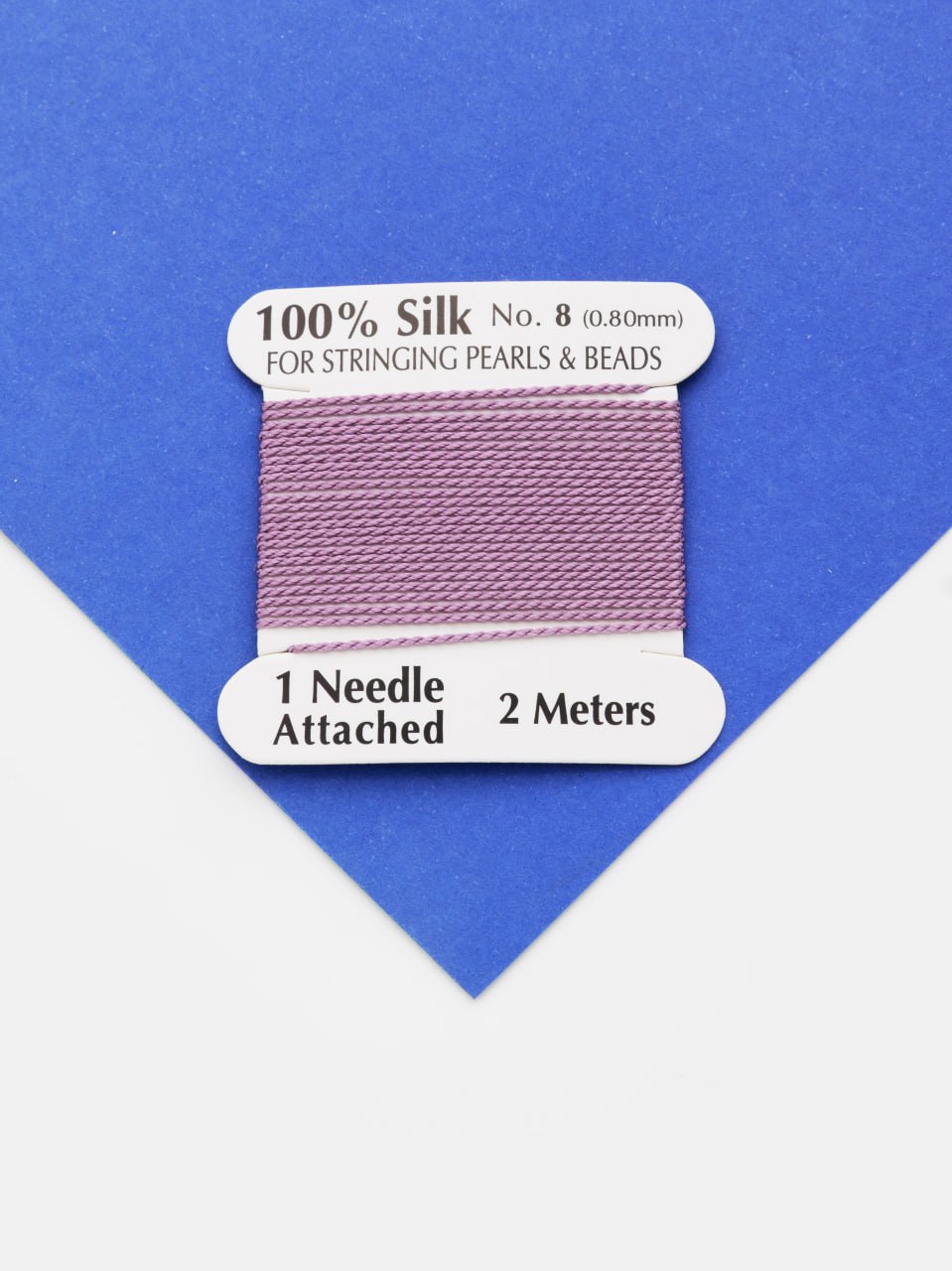 -Нить для жемчуга и камней, шелк, 0,8мм, лавандовый, катушка 2м + игла в комплекте, Ц095