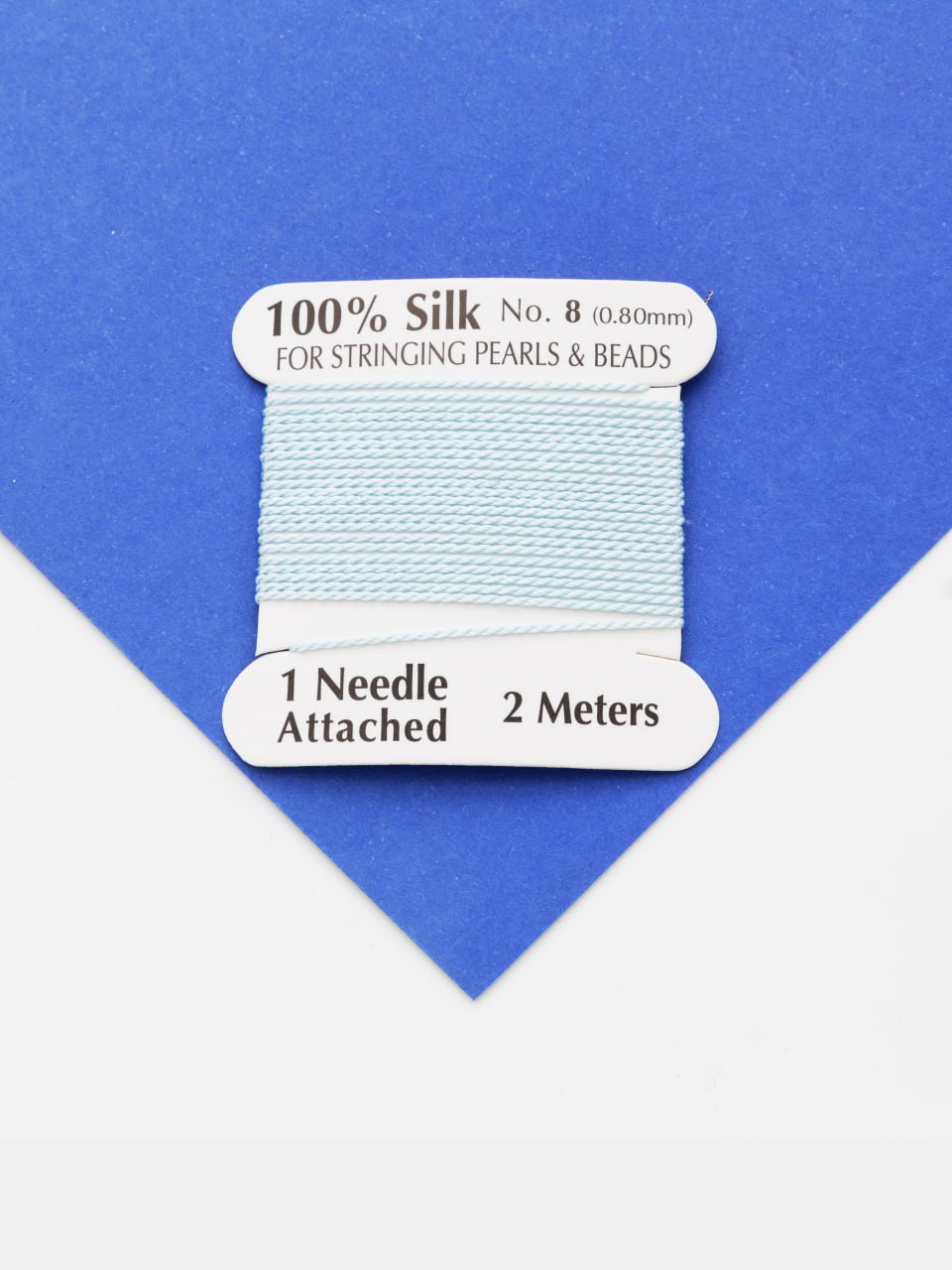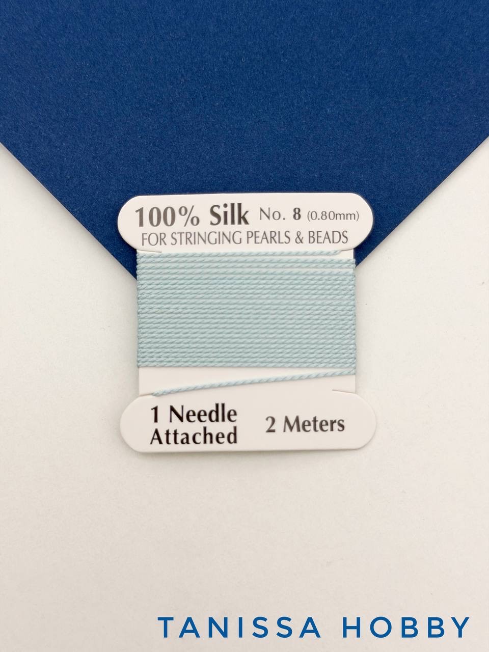 Нить для жемчуга и камней, шелк, 0,8мм, голубой, катушка 2м + игла в комплекте, Ц104