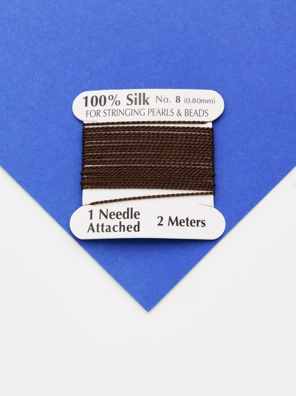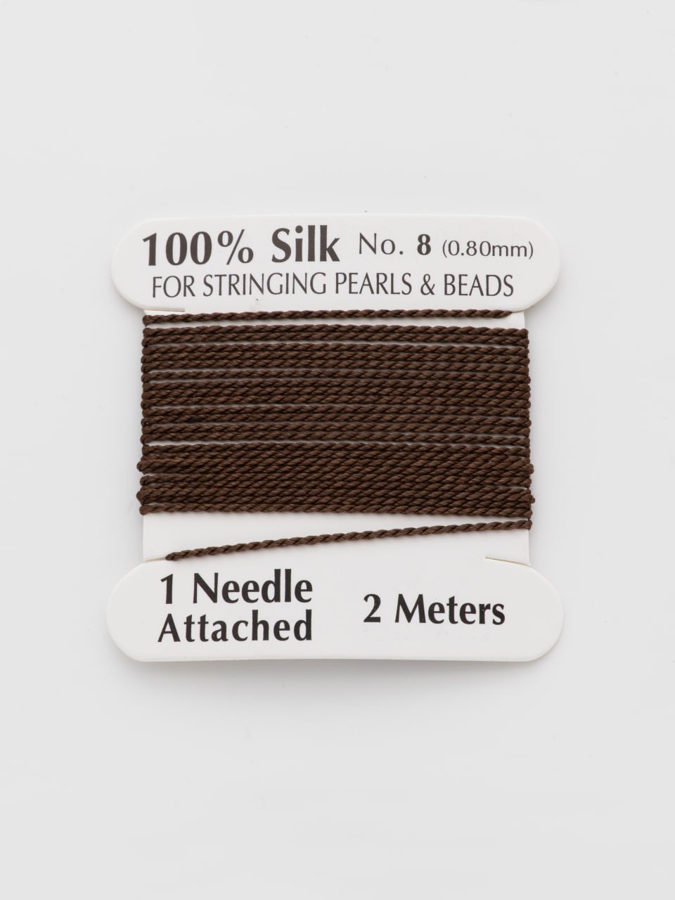 Нить для жемчуга и камней, шелк, 0,8мм, коричневый, катушка 2м + игла в комплекте, Ц105