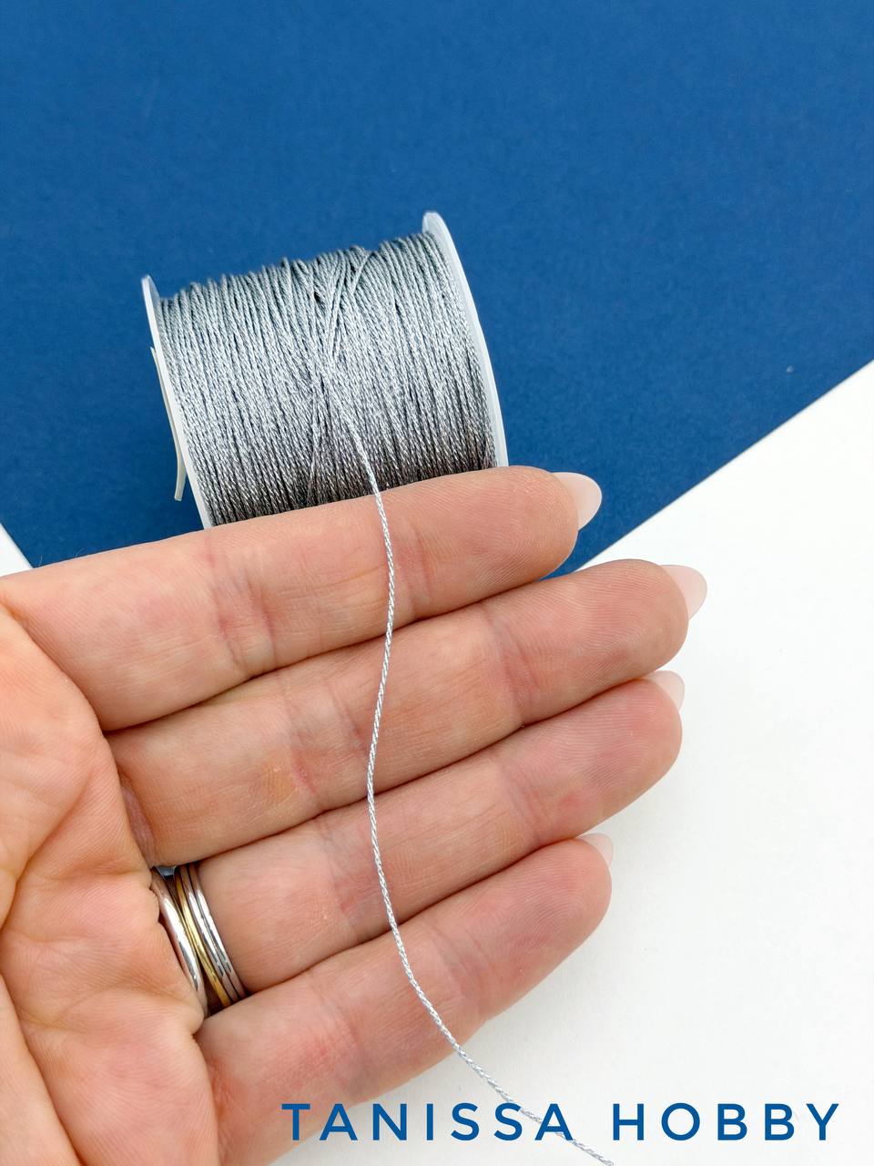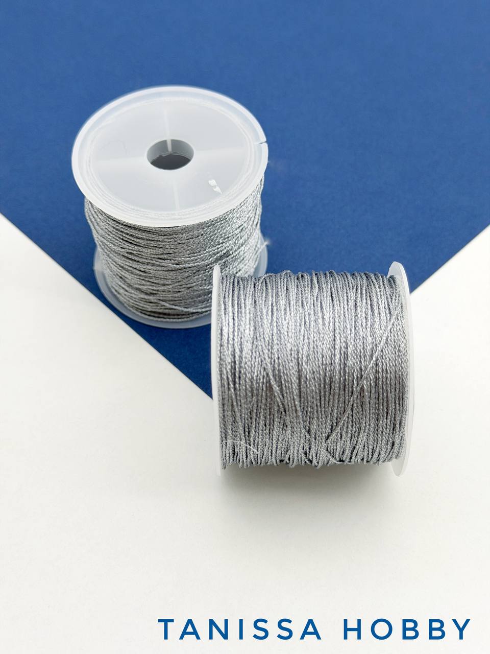 • Нить для жемчуга и камней, №6 - 0,4мм, серебро металлик, люрекс, катушка 48м, Ц117