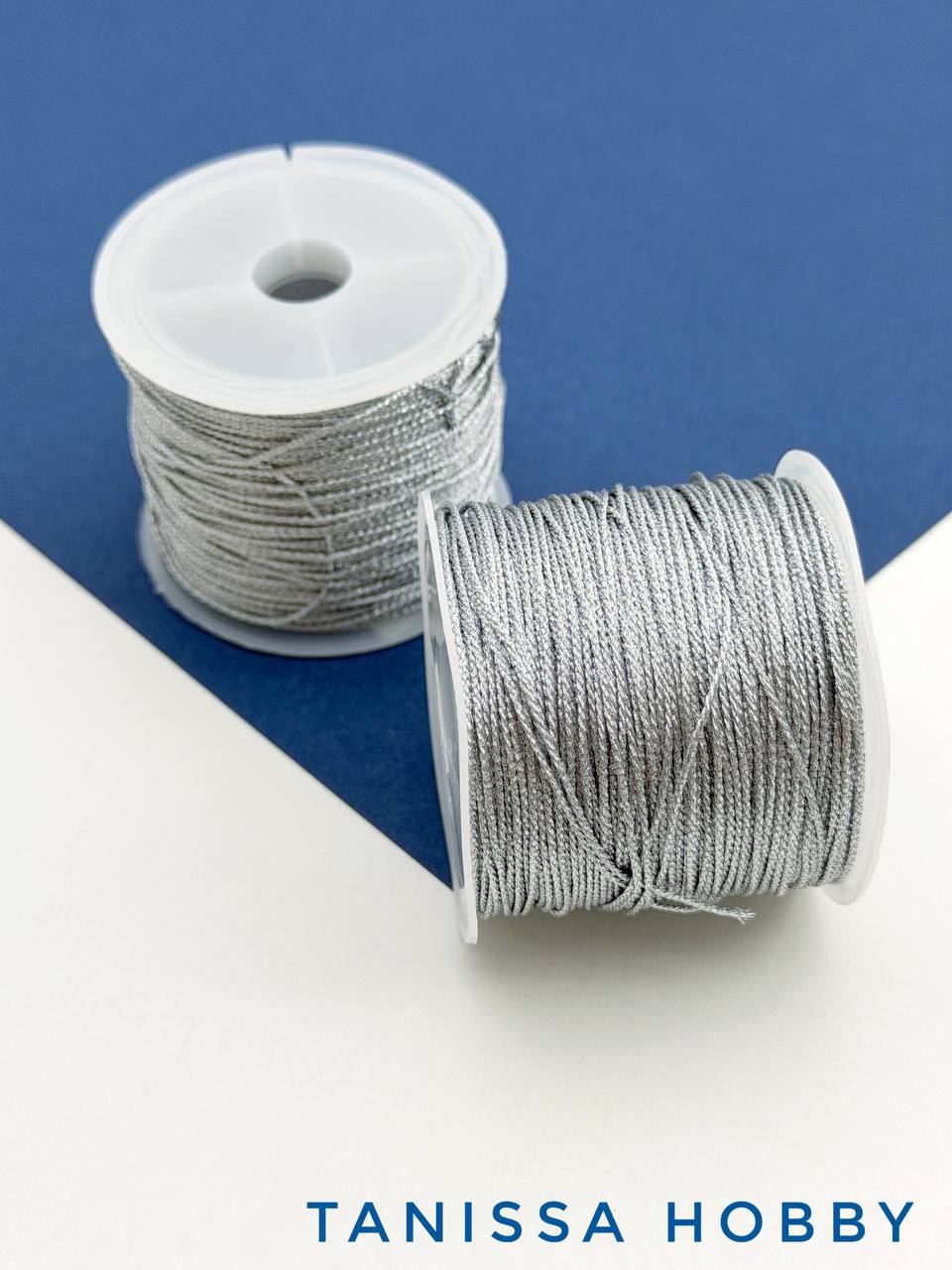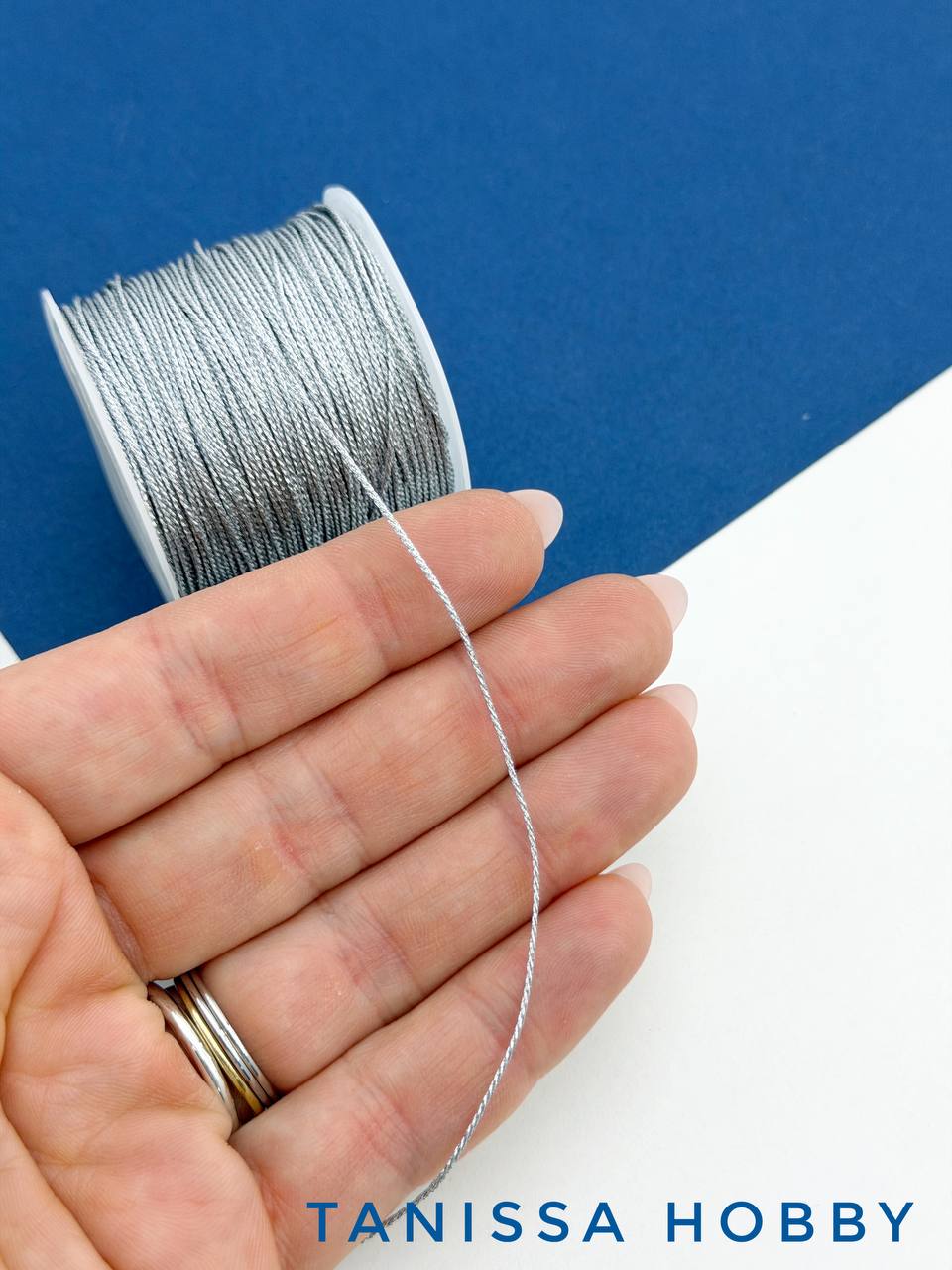 Нить для жемчуга и камней, №12 - 0,8мм, серебро металлик, люрекс, катушка 24м, Ц121