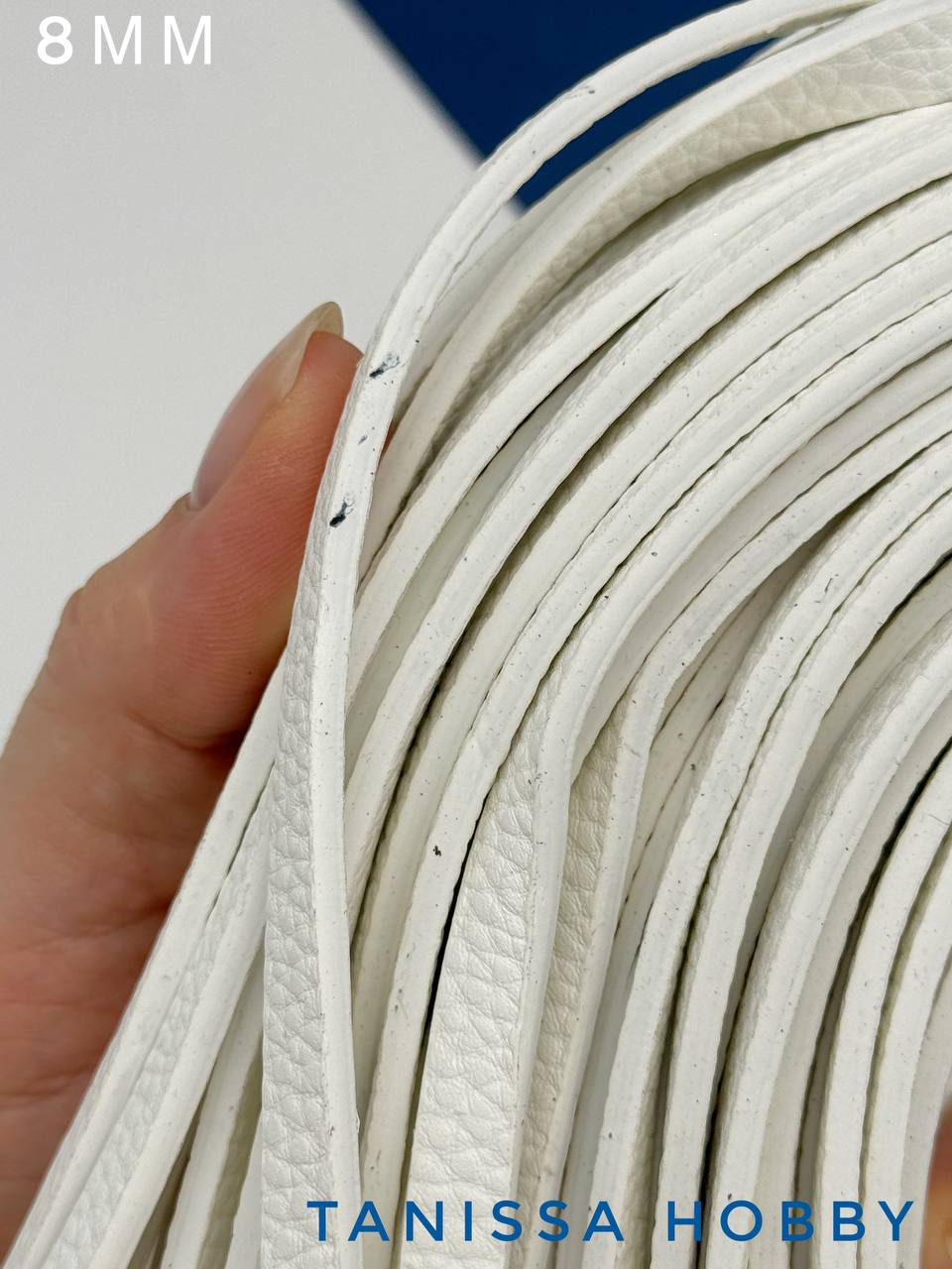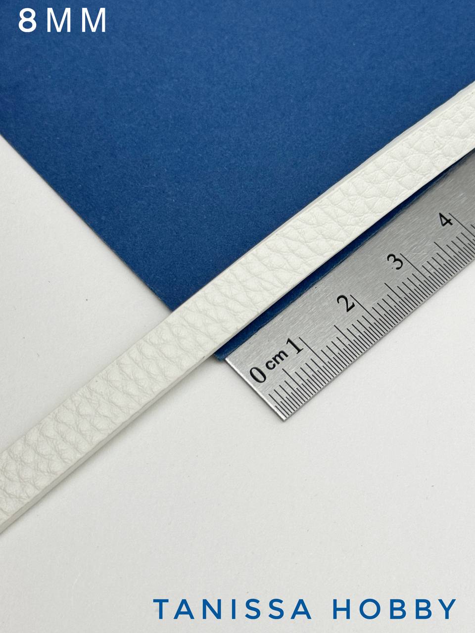 Шнур кожаный плоский 8мм белый, 115см, Ш011