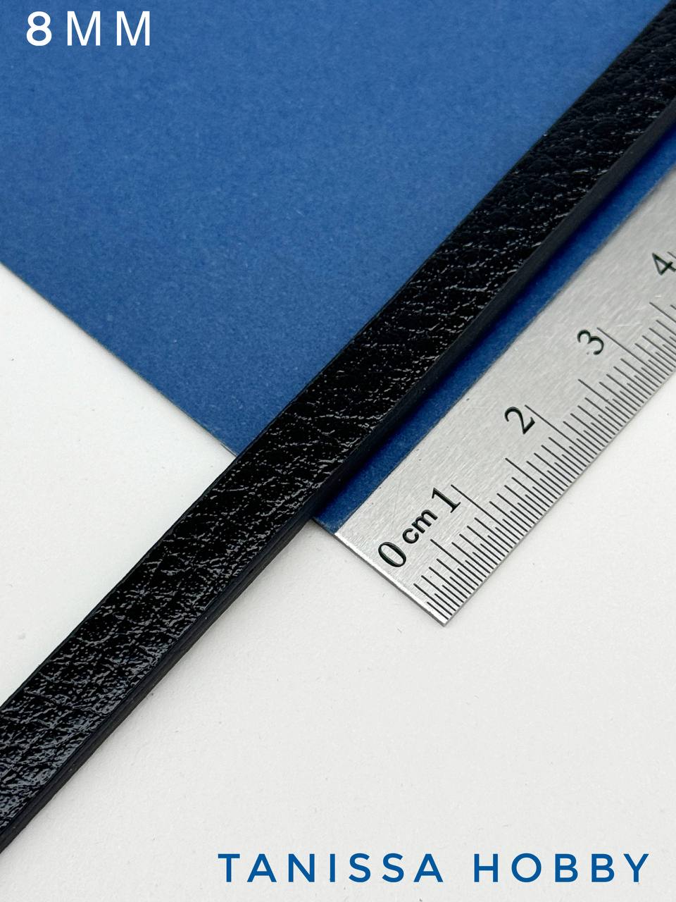Шнур кожаный плоский 8мм черный, 115см, Ш013
